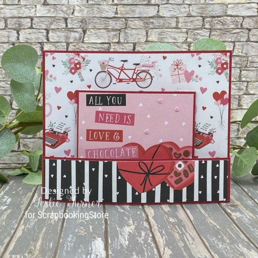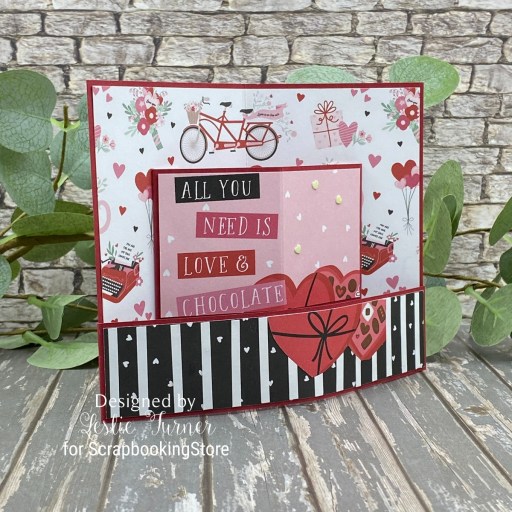 Hey everybody, it’s Friday the 13th – are you superstitious?! Naw, I’m not either. Just another day… hopefully a fun day crafting! I have one more ScrapbookingStore DT inspiration project to share with you today created with items in the February 2026 Scrapbook Kit with Upgrades. This mini bendi card is another favorite of mine that’s an easy one to make. There are some really fun and playful prints in this month’s kit that made this card so fun to put together!