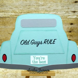LOVE this classic car trunk design and it’s so fitting for a guy! And the inked light teal cardstock is perfect! I’m always so proud to create with Sandy’s designs because they are always spot-on and realistic. She thinks of everything with regard to the elements, and all you have to do is cut and assemble! ;)