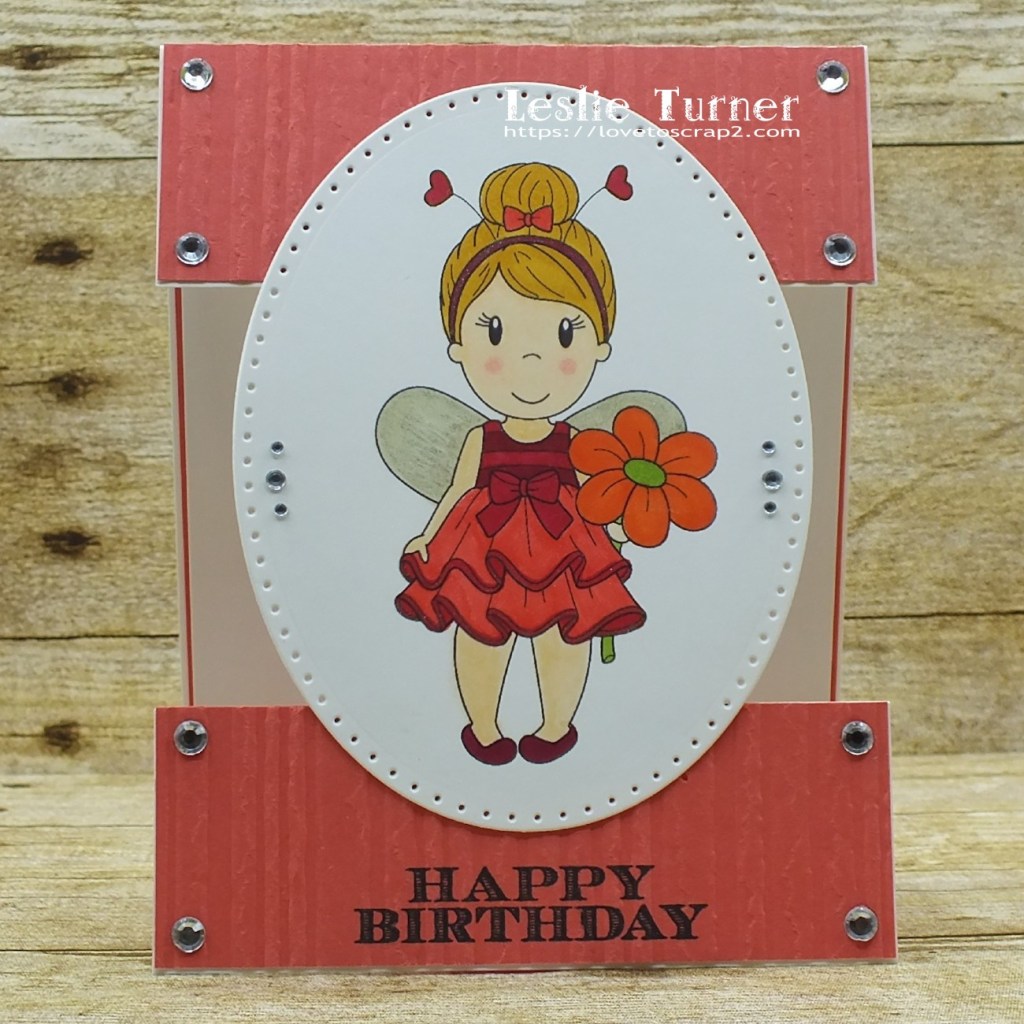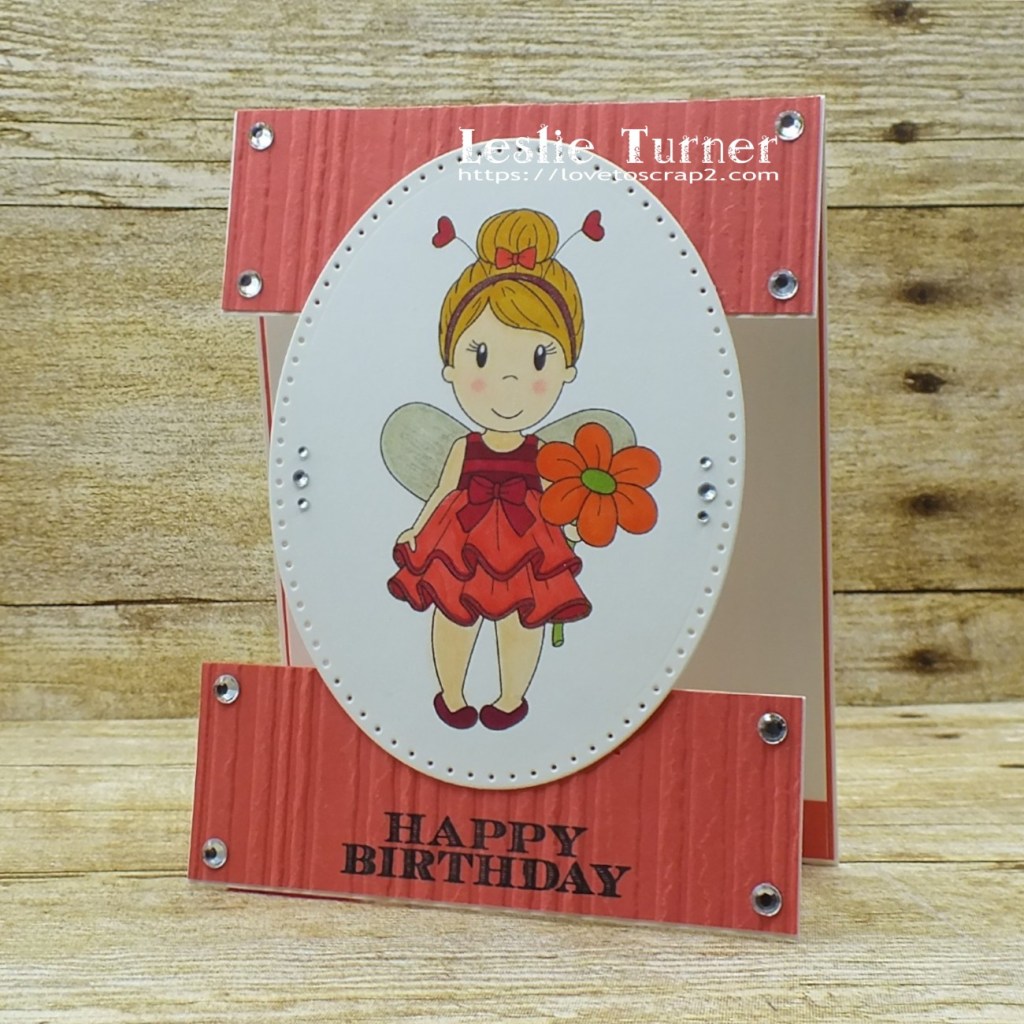 Hi friends! I hope you’ve had a fabulous week! It sure seems that Friday got here fast! Every day is like Friday when you’re retired but I have to say that the weeks are definitely flying by! Affiliate links are used in this post at no cost to you. I really appreciate your support! I’ve stopped in this morning to share the fun fold I created for The Outlawz March Freebie/Progressive Challenge! I finished it last week and have been so busy that I forgot to post it! Our sponsor this month is The Paper Nest Dolls and we were gifted the adorable Lulu Bee digital image to use for the challenge. I created a split panel fold in yummy watermelon colors and even used an embossing folder this time.