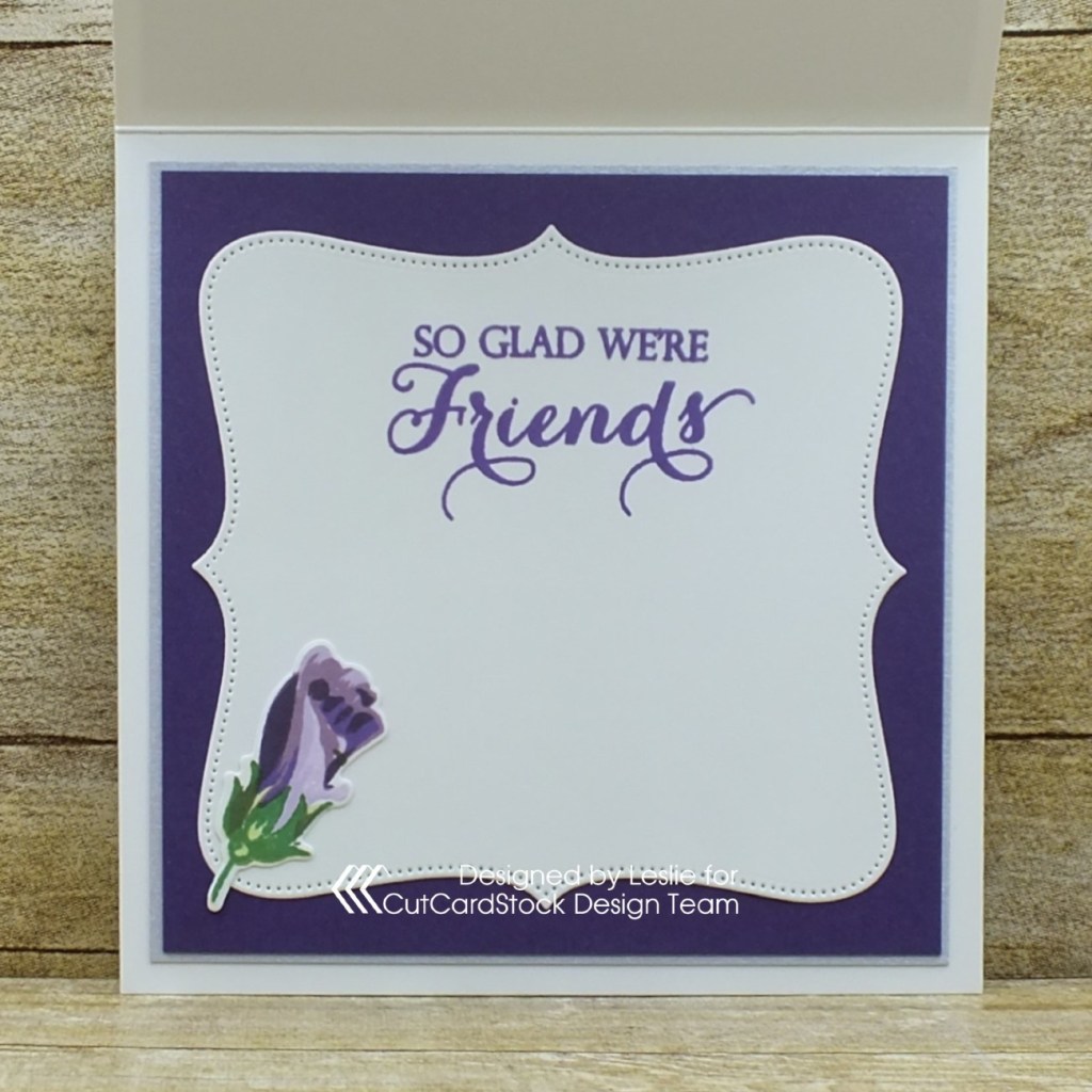 Hi friends! It’s Thursday, the weekend is fast approaching and I hope you have something fun planned! I’m stoked to be back on the CutCardStock blog today with an awesome DT inspiration project featuring Curious Metallic cardstock which happens to be on sale this month so be sure to get some! Affiliate links are used in this post at no cost to you. I really appreciate your support! I created a pretty friendship card on a Classic Crest card base with shimmery layers of Curious Metallic cardstock and stamped/die cut hibiscus flowers, buds and leaves.