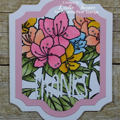 Hi everybody! Hope you are having a fabulous week and enjoying some wonderful Spring weather! It couldn’t be any more beautiful here than it has been for the past several weeks! In fact, I almost feel guilty for spending time in my studio, lol! Affiliate links are used in this post at no cost to you. I really appreciate your support! I’ve popped in this morning to share another sample that I created for the Prickley Pear Stamps Spring 2021 Release! I used the stunning Sketched Florals – Azalea stamp set for this pretty shaped thank you card. I absolutely love shaped cards and this is one of my favorites!