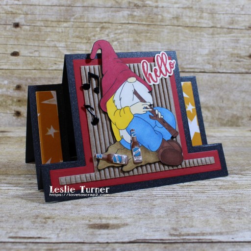 Hi friends! Happy Thursday – another week almost behind us! We’ve had a busy one and I’ve fallen a little behind in my posting. Affiliate links are used in this post at no cost to you. I really appreciate your support! I created this adorable center easel card for The Outlawz Sunday Songs & Rhymes Challenge where KLM Designs is sponsoring this month. “The World Cup” poem was the inspiration for this challenge and I focused on the bar scene and beer, lol! I used the super cool KLM Designs ‘Gnome Musician’ digital image along with Eyelet Outlet Beer Brads and Music Note Brads to make this card to tell someone how awesome they are!