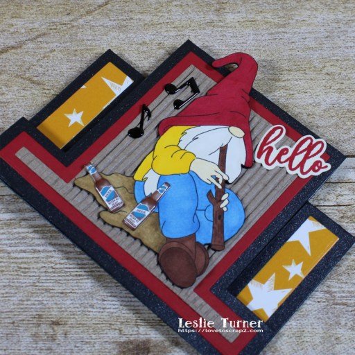 I love this Gnome, what a character. Love teh stepper card and your papers too Leslie.