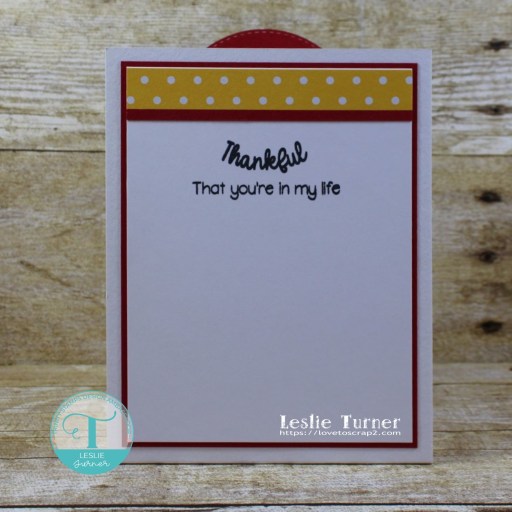 I cut the back panel from Neenah Classic Crest Solar White cardstock and embellished it with strips of yellow dotted and CutCardStock Pop Tone Wild Cherry cardstock, stamped the sentiment from the Succulent Banner stamp set and layered the panel on the red cardstock.