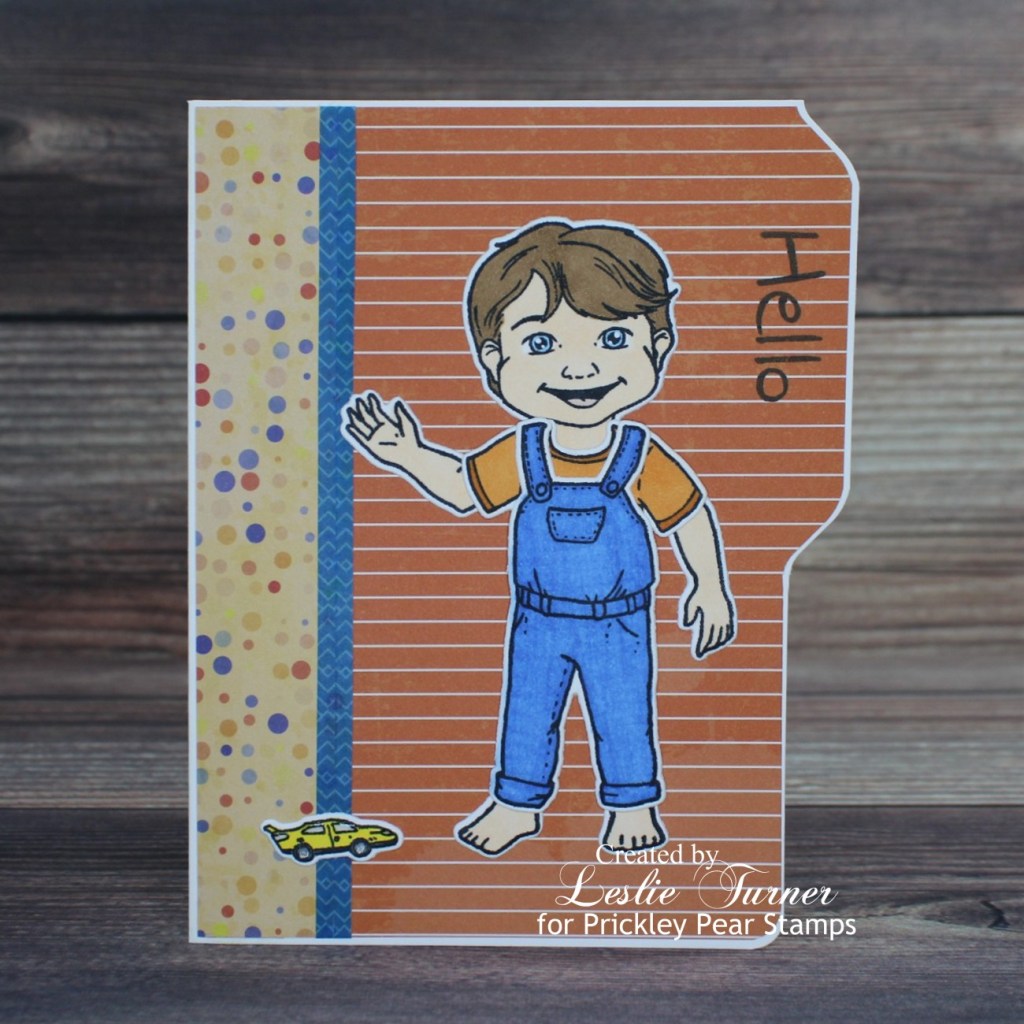Hi friends! Happy Thursday! This week is flying by just as fast as the rest, lol! We’re almost to Friday for all you working folks! Affiliate links are used in this post at no cost to you – I really appreciate your support! I’ve popped in to share another sample I created for Prickley Pear Stamps from their new Jack and Lily Collection! This adorable fun fold (file folder card) features the owners’ grandson, Jack, and was created with the Hello Jack stamp set with coordinating Hello Jack die set! How adorable is he barefoot in his little overalls?!