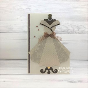 OOh la la! That dress shaped design is amazing! Love the way you cut out that corner of the card design too! Nicely done!