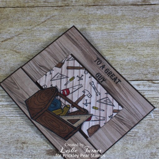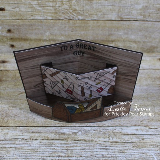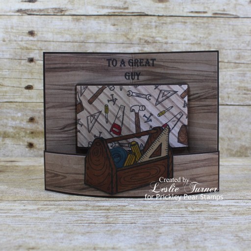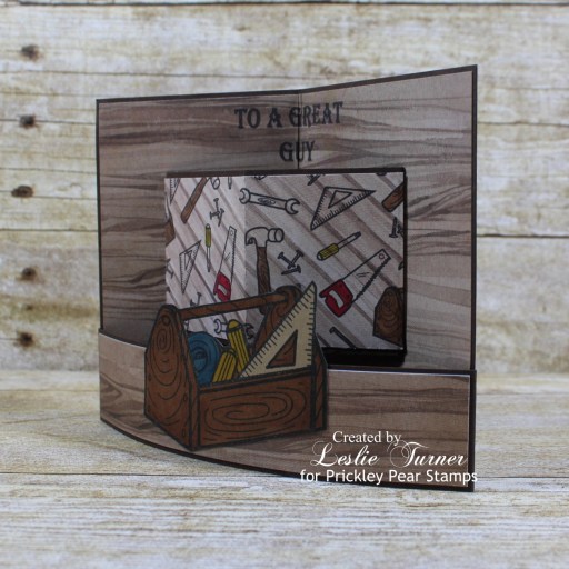Hi friends! It’s already Sunday and I hope you’re having a great weekend and making the most of what’s left of it! I don’t think I mentioned that I replaced my MISTI several weeks ago due to a crack in the door. I was lucky enough to score one of Iliana’s original hand-made MISTIs a number of years ago when my friend Vicki told a group of us about them on Facebook – before they became so popular and she started manufacturing them. It sure has served me well but I have to admit that I’m tickled to have a brand spankin’ new one! Affiliate links are used in this post at no cost to you – I really appreciate your support! I’ve popped in this morning to share a sample I created for Prickley Pear Stamps. I still have several card samples to share that I created a while back, and this mini bendi card is one of them. You know how I love me some fun folds and this mini bendi was showcased in a Splitcoast Stampers newsletter HERE a little more than a year ago. This card features the I Love You Toolbox And All stamp set and Tools background stamp which are great for masculine birthdays or Father’s Day which is coming up in a few months. This was a fun and easy card that sure packs a punch!