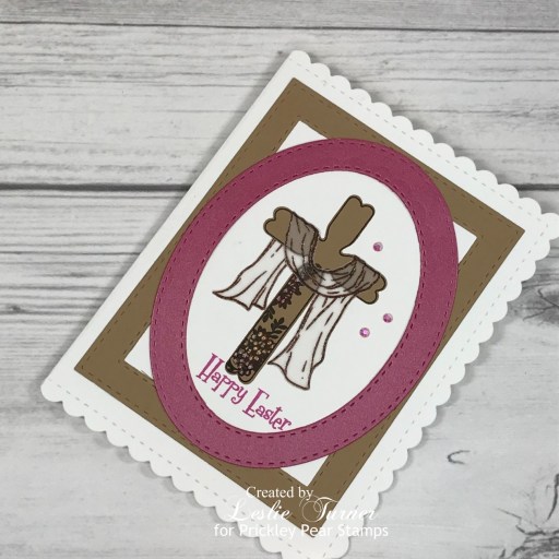 Hi friends! I hope you’re having a wonderful weekend and getting a little craft time in! Affiliate links are used in this post at no cost to you – I really appreciate your support! I’ve stopped in this morning to share another sample I created for the Prickley Pear Stamps new release. This card showcases the beautiful new Easter Cross stamp set along with the Crosses 2 stamp set and the Cross die set which were already in the store. It’s always fun to play with new stamps that compliment previously-released products! I love the embossed vellum scarf on this card!