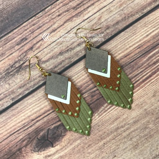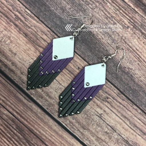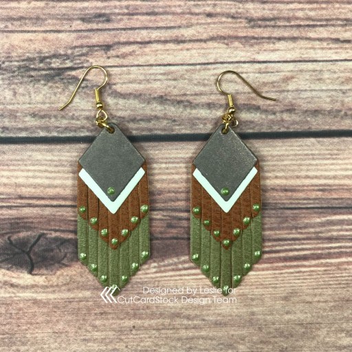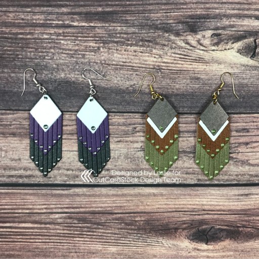 Hey, everybody! Happy Friday! What you got goin’ on this weekend… anything fun?! Lol, you know where I’ll be (wink-wink)! Affiliate links are used in this post at no cost to you – I really appreciate your support! I’m stoked to be back on the CutCardStock blog today with an awesome DT inspiration project featuring more of the Curious Metallic cardstock on sale this month! Have you ever even considered making earrings out of cardstock?! I created another couple pairs of fringe earrings – one pair is made entirely from Curious Metallic cardstock and embellished with tiny clear gemstones, and the other pair has Curious Metallic cardstock elements but is made primarily from craft leather and embellished with Nuvo Bottle Green Crystal Drops. These were so much fun!