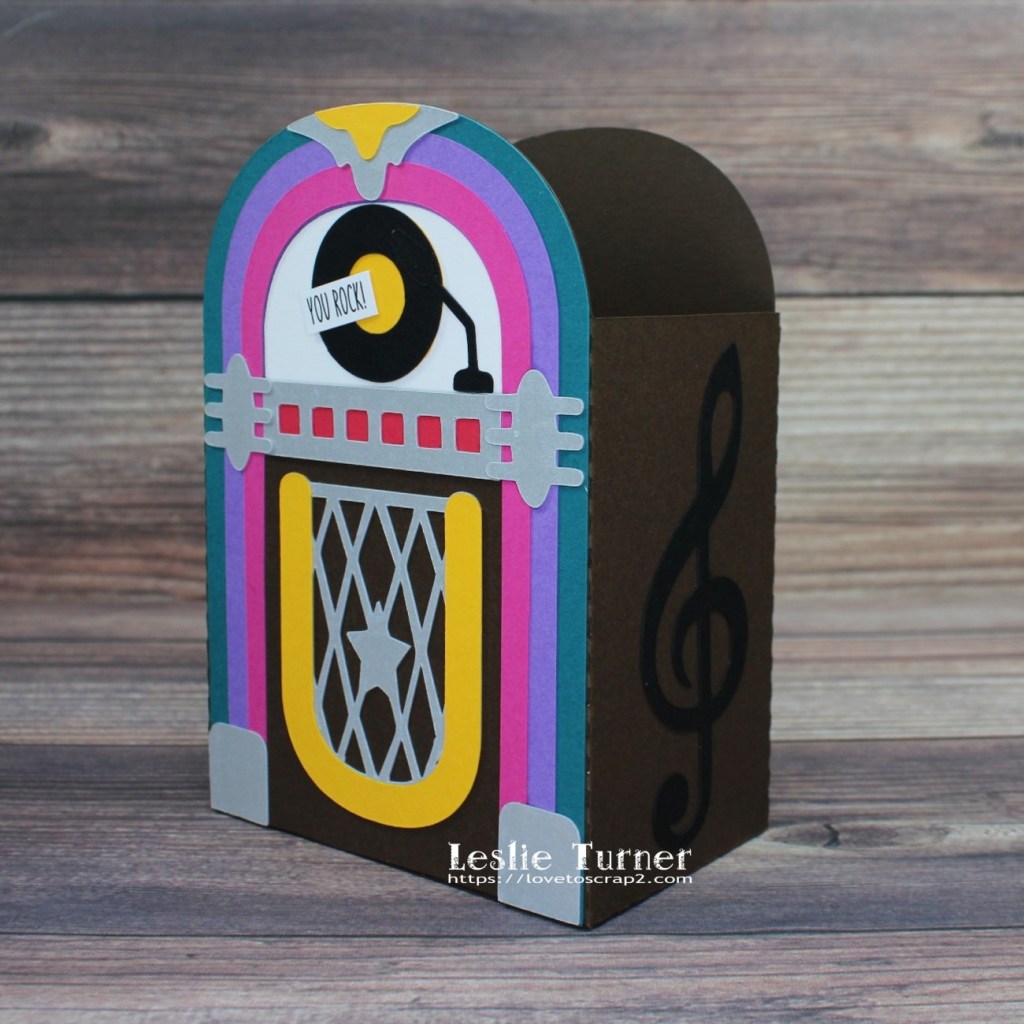 Hey everybody! I hope you’re having a great weekend and enjoying some wonderful weather! Our new challenge is live this morning over at Mix It Up Challenge Blog and I’m excited to share my DT inspiration project for MIUCB #59 – Anything Goes + optional 3-D Project! The sky is the limit for this one! Of course, the twist is never mandatory to play but we always love seeing our players inspired to play the twist! Let’s see some jewelry or a gift box, canvas, gift bag, home décor, etc. this time! I created a fun treat box with my Scan N Cut that looks like a jukebox! So stinkin’ cute I can’t even stand it!
