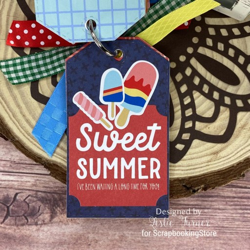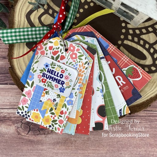 Hi everyone! Can you believe we’re headed straight into the middle of June already?! The year is almost half over… where are these months going?! I’m delighted to share a ScrapbookingStore DT inspiration project with you today created with the amazing June 2023 Scrapbook Kit with Upgrades! Next to fun folds, you know much I love making mini albums, and this tag album is a super simple project that is both adorable and useful! I used papers and stickers as well as chipboard, ephemera and adhesive brads from the upgrades!