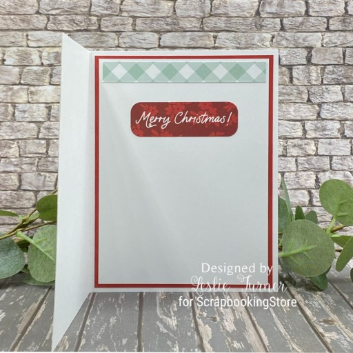 I cut the inside panel from 80# Solar White and embellished it with a leftover strip of the gingham paper used on the front and an additional sentiment from the Carta Bella Christmas Flora Ephemera. I layered the panel on CutCardStock Basis Red cardstock, which completed this easy card!