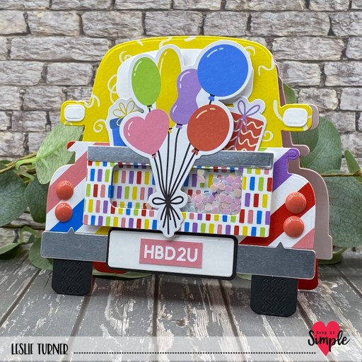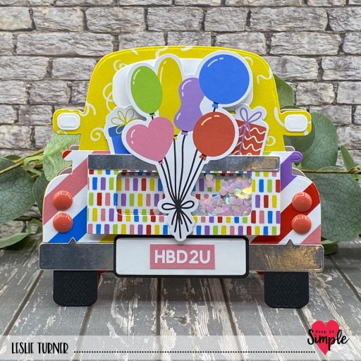 Hey everybody! I hope you had a great weekend! I’m delighted to share a Keep It Simple DT inspiration project with you today created with our amazing Back To Basics Vintage Truck Dies along with papers and die cut pieces from our Happy Birthday collection. Everybody knows that there is nothing more fun than a shaker card, so I transformed the tailgate on this truck into a shaker!