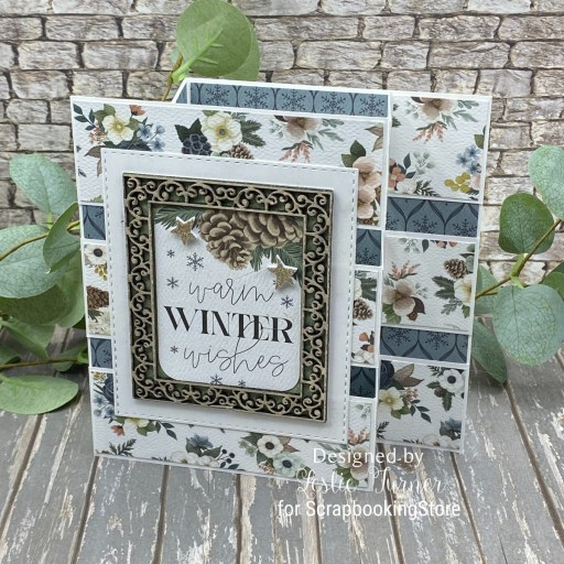 Hi friends, happy happy weekend! I hope you’re having a fun one! I have had THE best time creating Winter-themed projects… ’tis the season to be freezin’, right?! I have one more ScrapbookingStore DT inspiration project to share with you today created with items in the January 2026 Scrapbook Kit with Upgrades. Now, we wait patiently for the February kit, lol! I’m sure I’ve mentioned that the triple z-fold is one of my absolute favorite fun folds and I’ve made lots of them over the past few years. I used elements from everything in this month’s collection to make this one, and I love how it turned out!