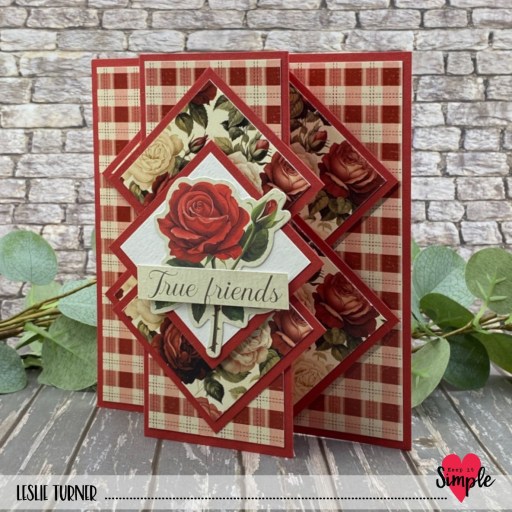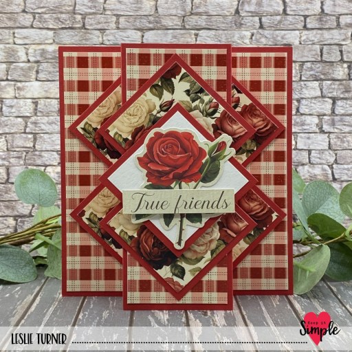 Hey everybody, I hope you’re having a good week so far! Ed and I have been down with Covid for 8-9 days now and it’s kicking my butt like nothing I’ve ever experienced. We’re both high risk and we’ve had all the vaccinations and boosters so far, so I guess we can consider ourselves lucky to have escaped it until now. I will tell you it’s some nasty stuff. So I’m a couple days late posting this beautiful card for Keep It Simple. It’s another layered diamonds pop-up card which has quickly moved to the top of my favorites list. My inspiration came from Connie Stewart and features papers and die cut pieces from our beautiful new La Vie En Rose collection.