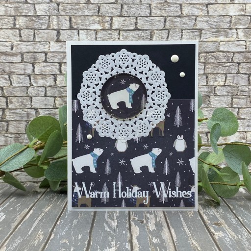 Hey everybody, happy Thursday! I hope you’re all doing well and staying warm in this cold snap! Our temps have been in negative numbers here and with all this humidity (that we didn’t have in Colorado), we sure are feeling it! I decided to create a card for the January ‘Use Your Stash’ challenge over at Danni Bindel’s This & That With Danni’s Dreams Facebook Group. The prompts are Bears, Snowmen, Doilies, Hot Cocoa and Penguins. This adorable Echo Park paper has bears and penguins on it, and I added a doily to capture three of the five stash prompts. Danni always has several different challenges going on in her group, so come on over and play! Y’all know I create Christmas cards all year long, and although I’ve made several Winter-themed cards this year, this is the first actual Christmas card of the new year!