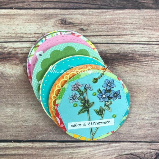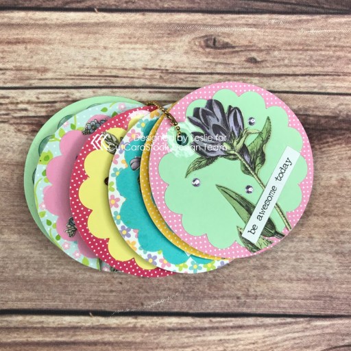 I created a 3” square mini album from a sheet of 12×12 American Crafts Black cardstock and adhered a 2-3/4” square panel cut from a variety of patterned papers from the collection to the front and to each page, with an additional piece cut for the spine. I added a ‘Book of Spells and Potions’ sticker to the front and a sentiment sticker to each page. Using the Stampin’ Up Scalloped Tag Topper Punch and American Crafts Dandelion and Key Lime, Neenah Crest Solar White, and CutCardStock Stardream Metallic Aquamarine cardstock, I created a tag for each page and tied twine to the top of each.