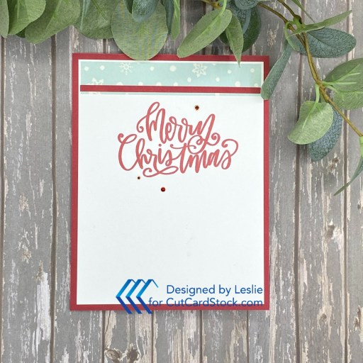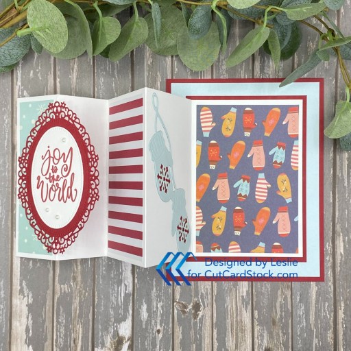 I cut the back panel from Solar White as well, and embellished it with paper and cardstock strips used on the front. And this sentiment stamp is from the same Love From Lizi stamp set. I embellished the mittens and back panel with Stampendous red Dot Sparklers. Fun, fun, fun… and now that I’ve found the instructions for this card, I’m sure you’ll see it again! And be sure to visit the CutCardStock blog to see my tutorial if you’d like more detail.