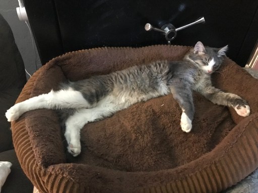 Our rescues get nutritious meals, treats, clean litter boxes, toys, clean beds, up-to-date shots and medical/dental care. Four of our rescues have dental disease that we’re currently dealing with. All have been spayed or neutered.