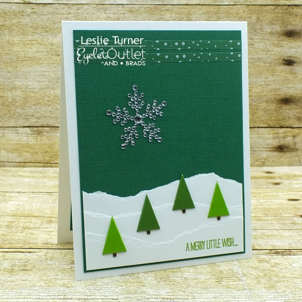 Hi everyone! Happy Saturday! Eeeek, it’s the middle of November already – how did that happen?! I’m happy to be back on the Eyelet Outlet blog today with another awesome DT inspiration project! I created another snowy (and CAS) Christmas card featuring some pretty awesome brads, bling and washi tape!