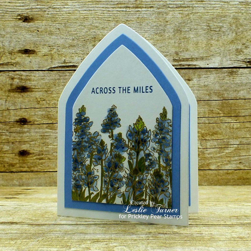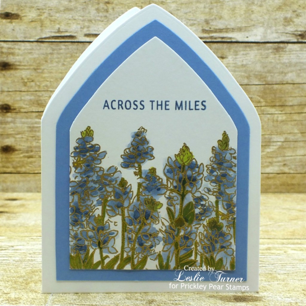 Hi friends! Happy Hump Day – I hope you have a wonderful day! So hard to believe we’re headed into July already! I’ve popped in this morning to share another sample I created for Prickley Pear Stamps! I’m so in love with these stamps and dies – I could play endlessly in my studio, lol! I created a pretty ‘missing you’ shaped card featuring the gorgeous Blue Without You Bluebonnets clear stamp set.