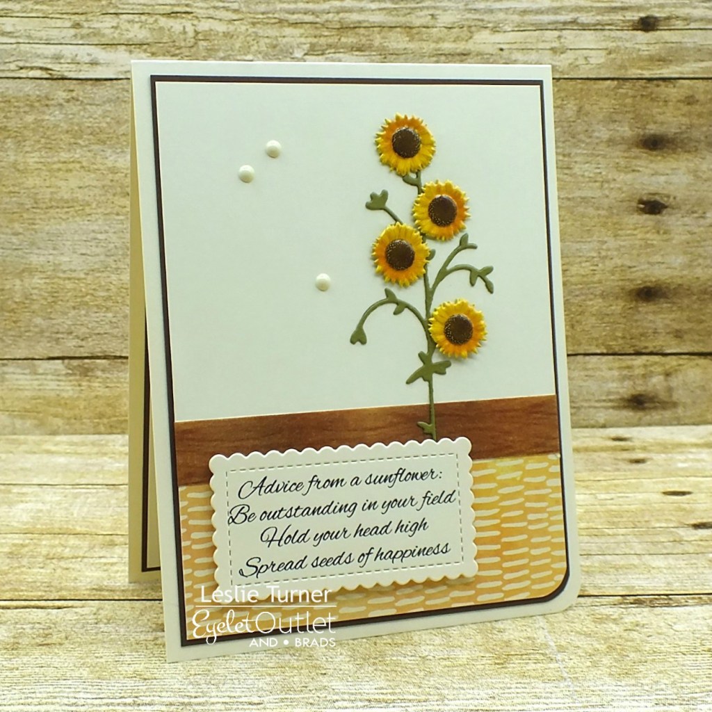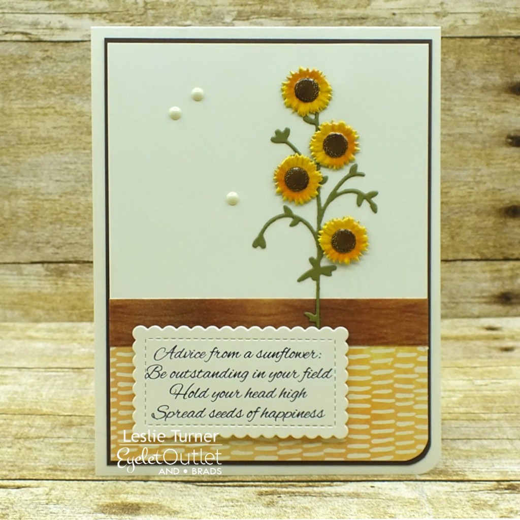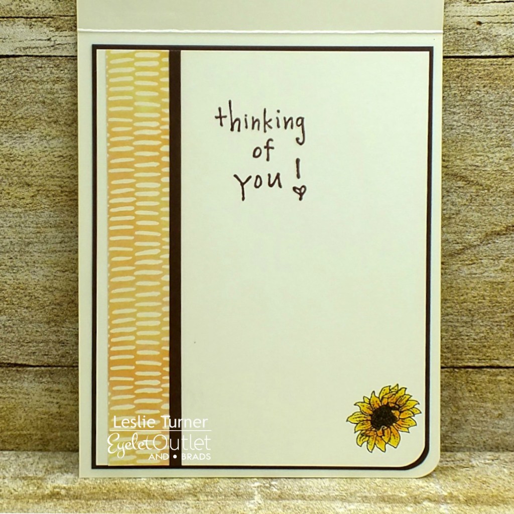Happy Saturday, friends! Hope you’re having a great weekend! Affiliate links are used in this post at no cost to you. I really appreciate your support! I’m excited to be back on the Eyelet Outlet blog today with another awesome DT inspiration project! I created a pretty CAS ‘thinking of you’ card featuring several awesome products – but the main attraction on this card is the sunflowers! I love all kinds of flowers but I would have to say that the sunflower is my favorite!