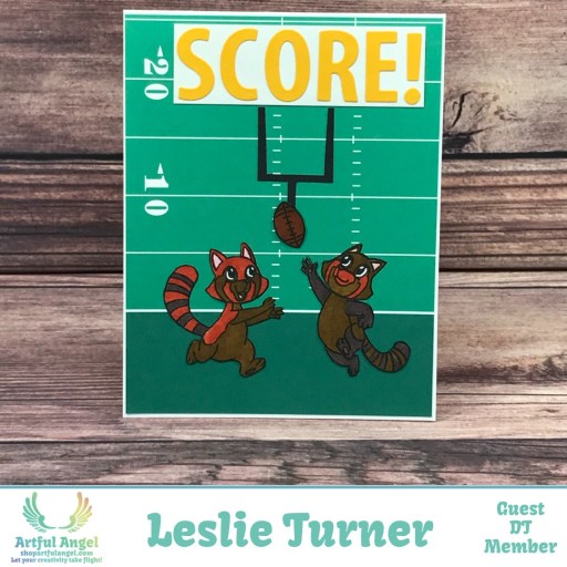 Hey everybody! Happy Fri-YAY! I hope you’re having an awesome week and you’re looking forward to doing something fun this weekend! I’m back this morning with my third and final inspiration project for the Artful Angel August new release! I’ve had SO much fun playing with the Fall Fun stamp set and this hybrid card features a fun digital football field background with a pair of super cute red pandas playing football! I had a good time creating this card but did change my other mind a couple times trying to settle on the background! ;)