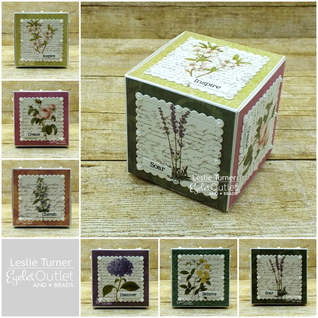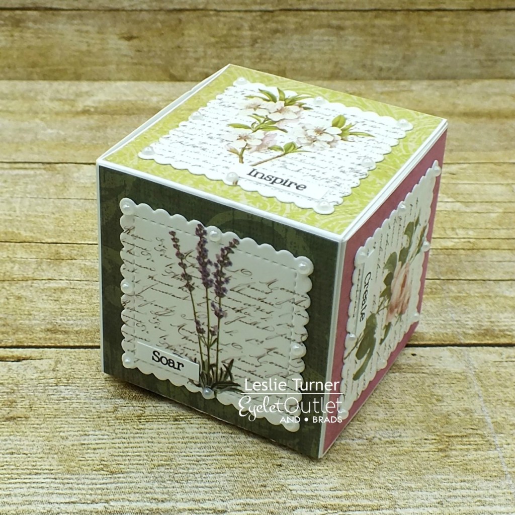 Happy Saturday, friends! I’m happy to be back on the Eyelet Outlet blog today with another awesome DT inspiration project! Are you familiar with ATCs? And did you know there is an artist trading CUBE in the ATC family?! Yep, there is, and they can be any size! So I created a 2-1/2″ square cube featuring gorgeous floral washi tape and small pearl bling!