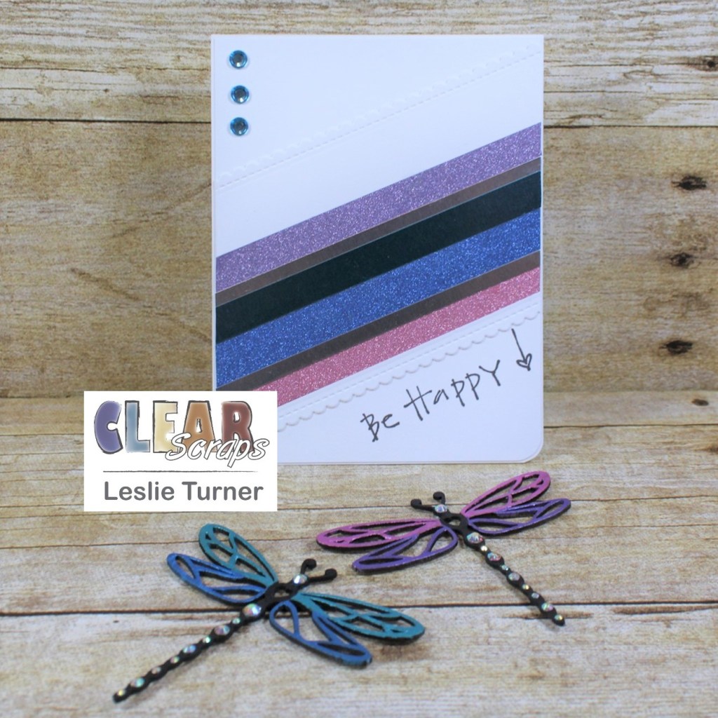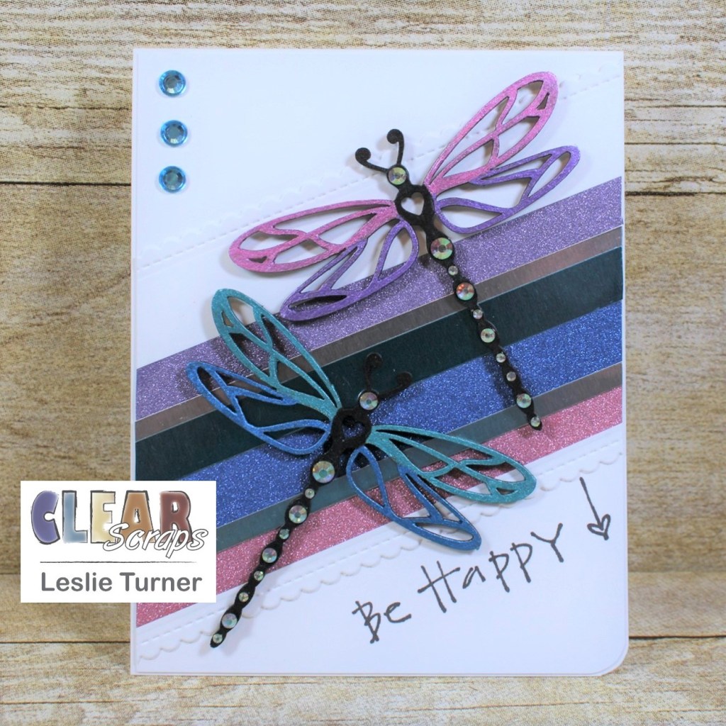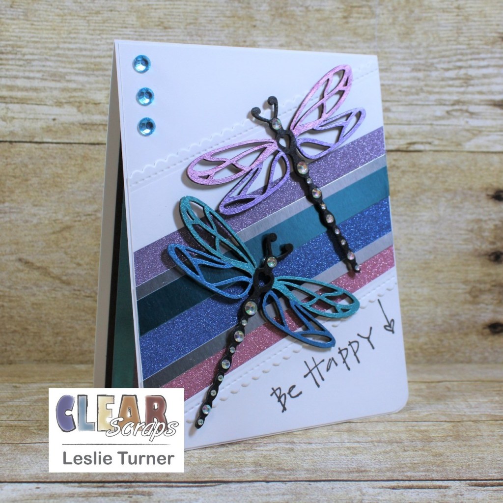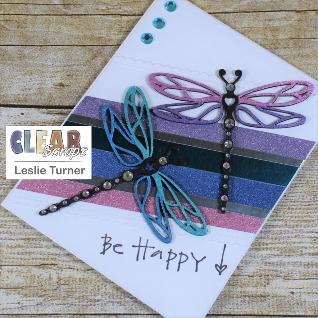 Hey, everybody! Happy Monday to you! I hope you had a marvelous weekend and were able to do something fun! You know where I was… yep, you got it! In my studio doing what I love! And our weather is cooling off here and I’m loving life! I’m thrilled to be back on the Clear Scraps blog today with another awesome DT inspiration project! I created a pretty birthday card with two removable dragonfly magnets! The magnets were created with the Dragonflies Chipboard Embellishments and painted with some oh-so-gorgeous metal gloss paint in several colors. So between the dragonflies and the foiled and glitter cardstock, there’s a whole lot of shimmer going on! What a fun way to give a card and gift in one! Magnets are always a big hit no matter where they are placed – they are a constant reminder of who gifted them!