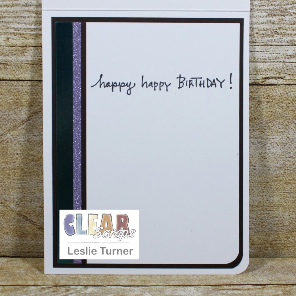 I cut the inside layering panel from white cardstock and embellished it with strips of glitter and brown cardstock used on the front. I stamped the sentiment in brown ink as well, and layered the panel on brown cardstock to tie in the color of the dragonfly bodies.