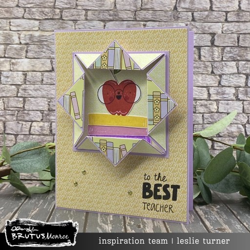 Howdy peeps, Happy Friday! I hope you’ve had a good week. I’m delighted to share my final Brutus Monroe DT inspiration project with you today featuring the Teacher’s Apple stamp set and coordinating prints from the Book Club paper pack. I also used Heather cardstock, the Super Sentimental stamp set (for the inside sentiment), and some Topaz crystals. This is the first explosion card I’ve made in years and I had forgotten how fun they are! It’s such an easy element to add to any card – and it packs a serious punch!