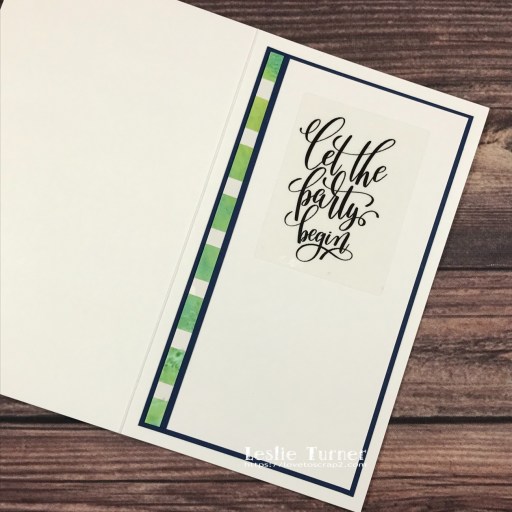 I cut the inside panel from Neenah Classic Crest 80# Solar White cardstock and embellished it with a strip trimmed off the front panel and a narrow strip of CutCardStock Basis Blue cardstock. I affixed a CRAFTplorations Happy Happy Clear Sticker and adhered the panel to blue cardstock.