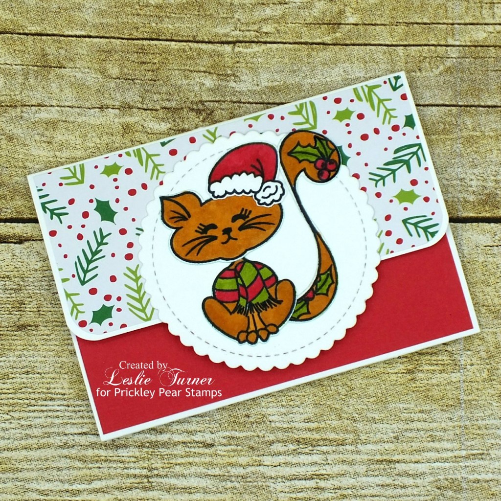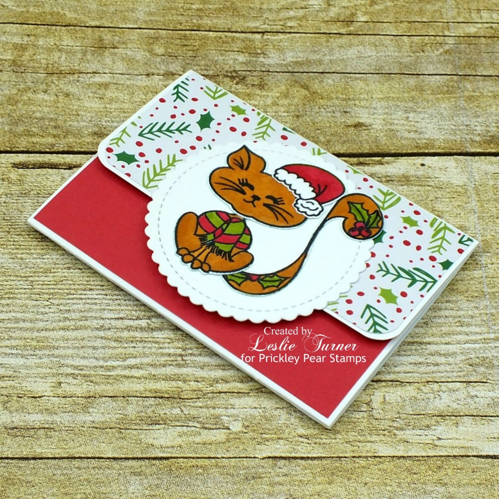 Hi friends! Well, the first quarter of 2021 is history as they say! Wow! Affiliate links are used in this post at no cost to you. I really appreciate your support! Our new challenge launched this morning over at Merry Little Christmas Challenge Blog and I’m excited to share my DT inspiration project for MLCCB #33 – April Anything Christmas Goes! I have an adorable Christmas gift card holder to share today, created with the Prickley Pear Stamps Build A Cat stamps and dies. OMG, can you say a-DOR-able?! I love playing with these cat stamps and dies!