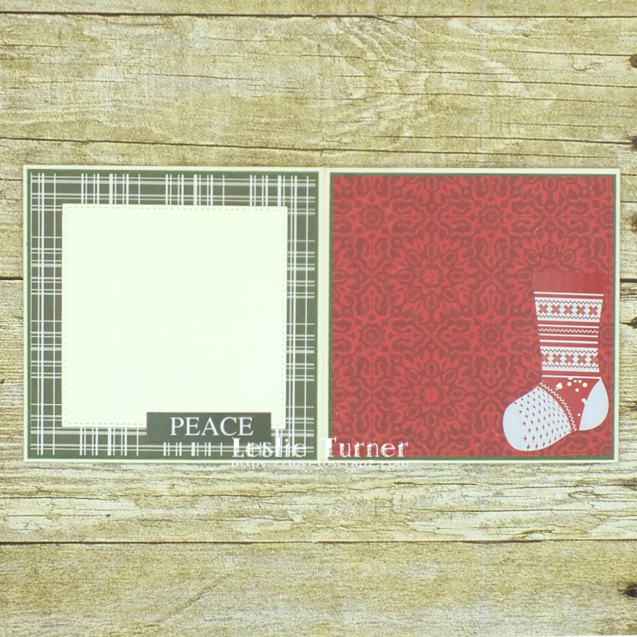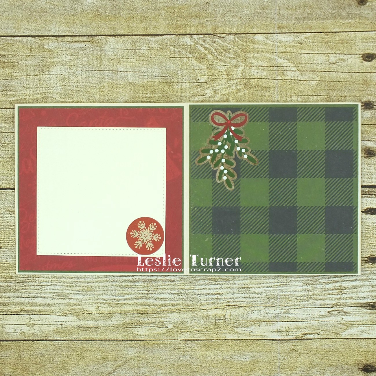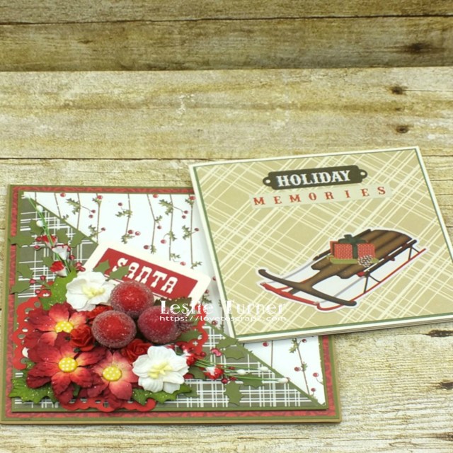 Here are some shots of the Z-fold mini album. There are three panels on the front side and three on the back side. Each panel is layered and embellished with square or circle die cuts and/or holiday elements, leaving lots of room for photos and journaling.