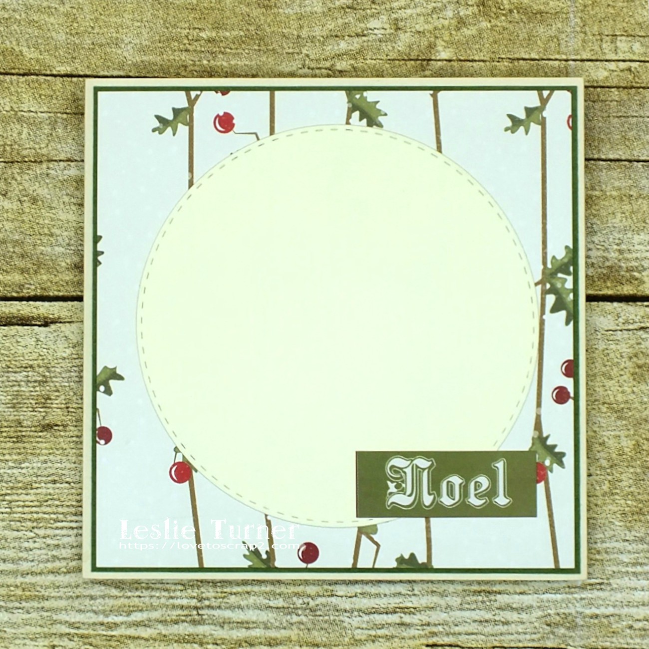 Dies/Punches: QuicKutz Antique Doily die, Creative Expressions Holly Sprays dies, Sizzix Holiday Words: Script die, Memory Box Stitched Circle Layers die, My Favorite Things Die-namics Stitched Square STAX die