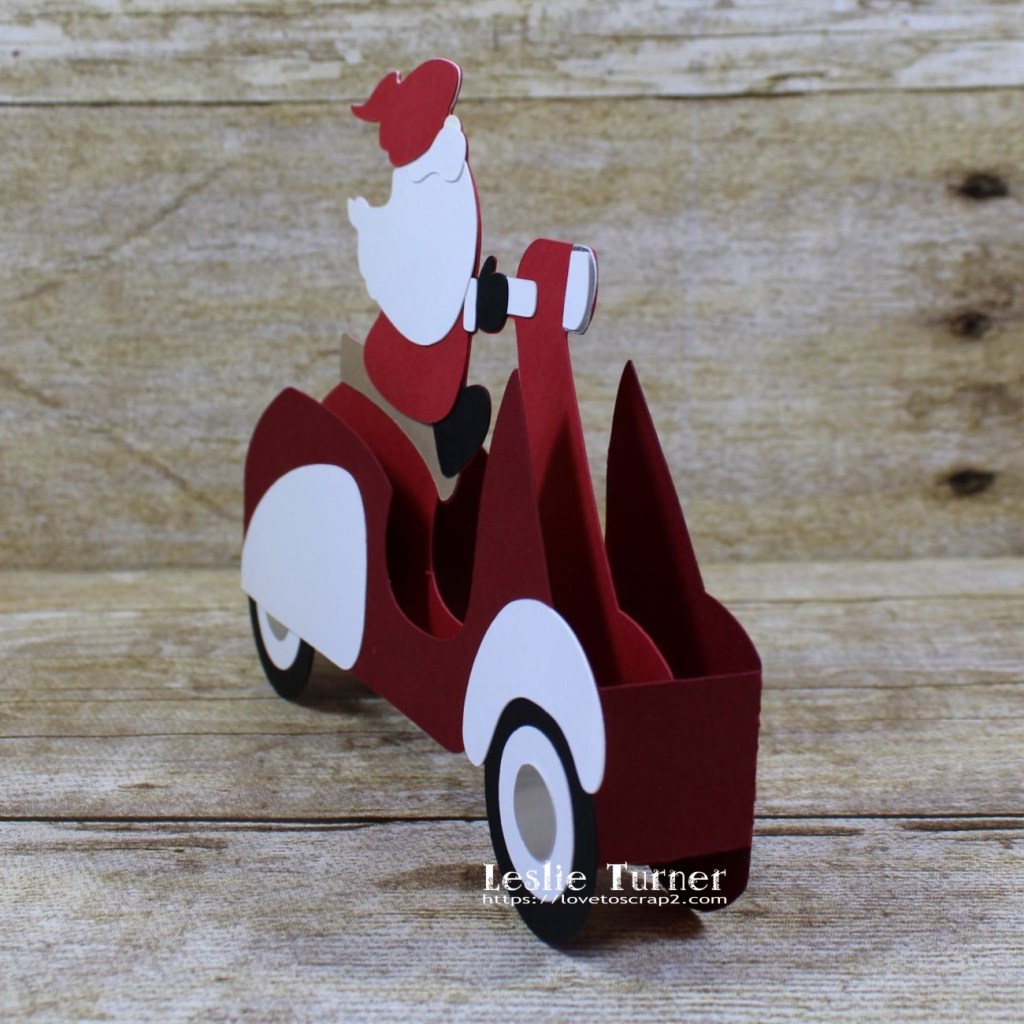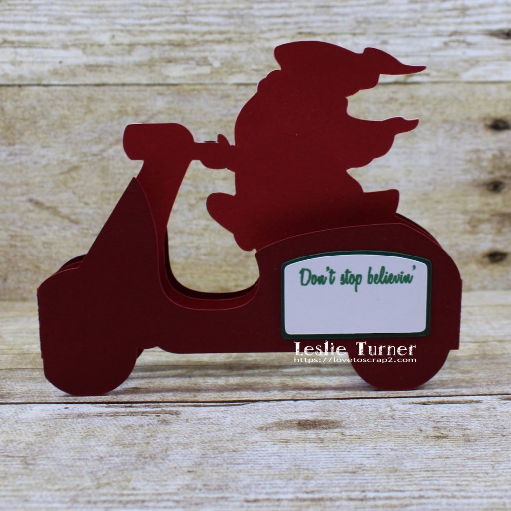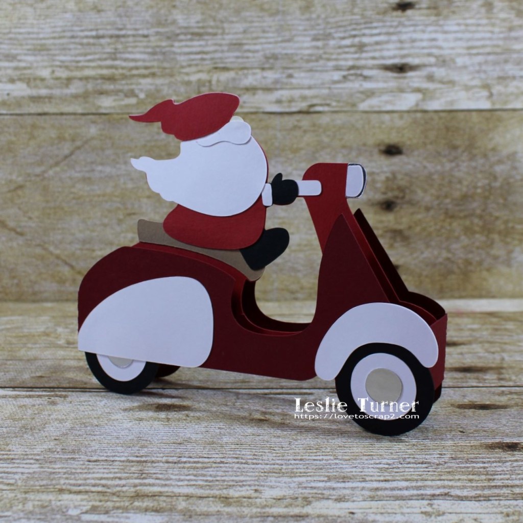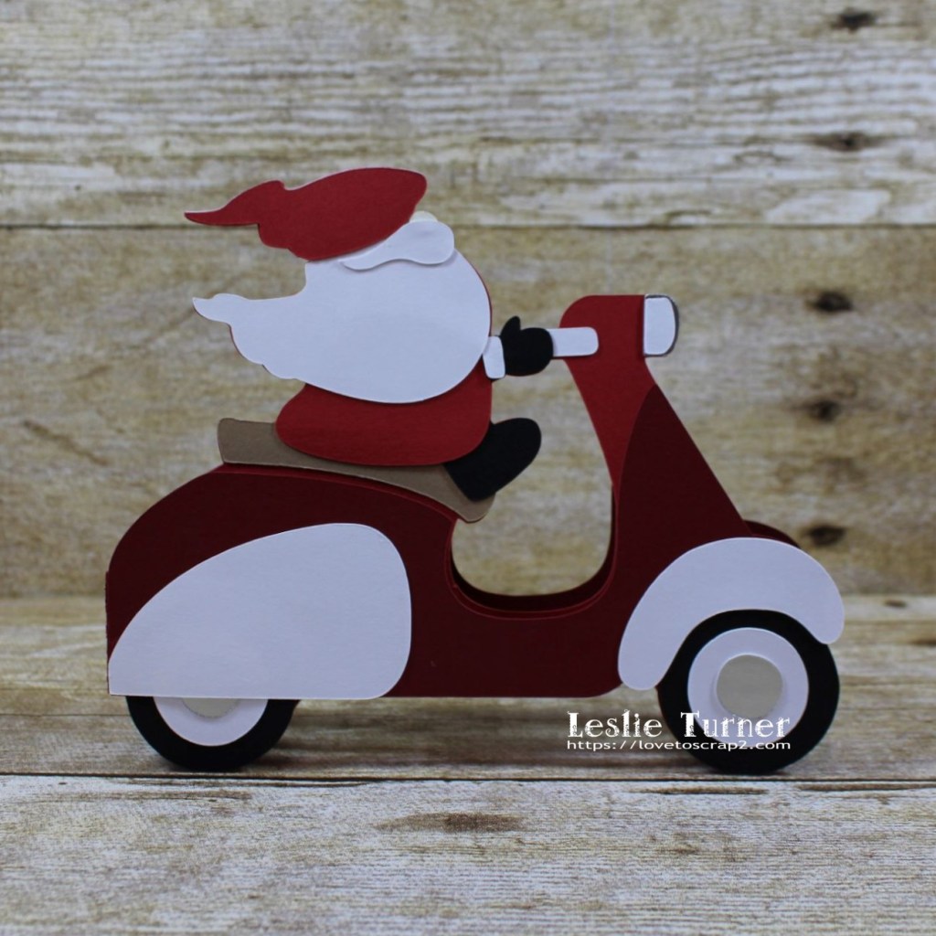 Hi friends! Hope you’re having a great week! We’re on the downside to the weekend and time is zooming by! Affiliate links are used in this post at no cost to you. I really appreciate your support! I’ve popped in this morning to share a project I’m entering into The Outlawz Sunday Songs & Rhymes Challenge where SheepSki Designs is sponsoring and the theme is the song or rhyme “The Open Road.” My inspiration came literally from the word ‘travel’ so I decided to share a cycle-riding Santa box card that I made with my Scan N Cut. What a hoot! He’s definitely ridin’ in for the challenge, lol!
