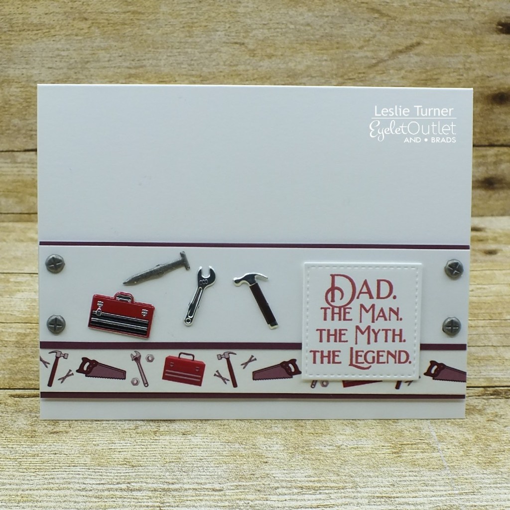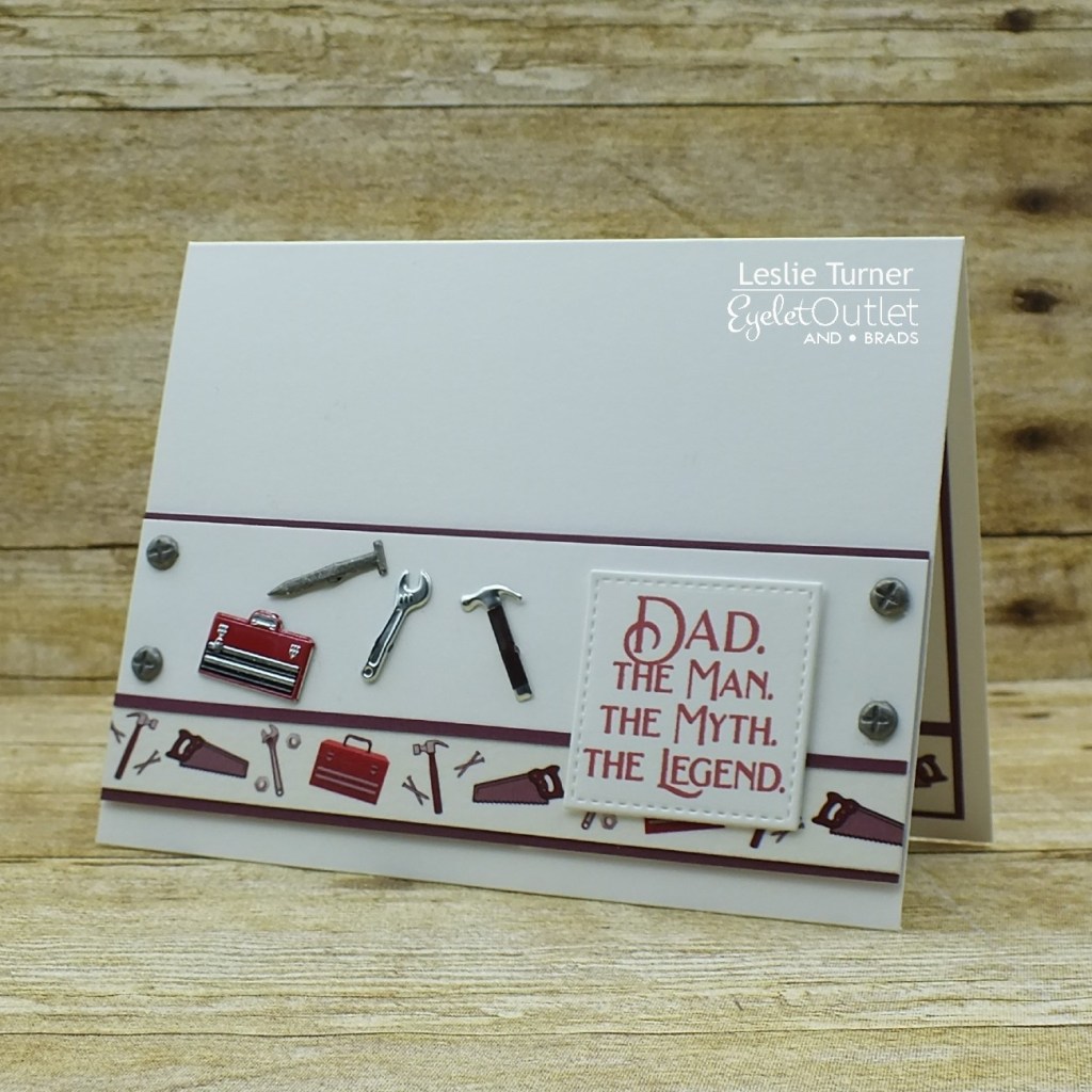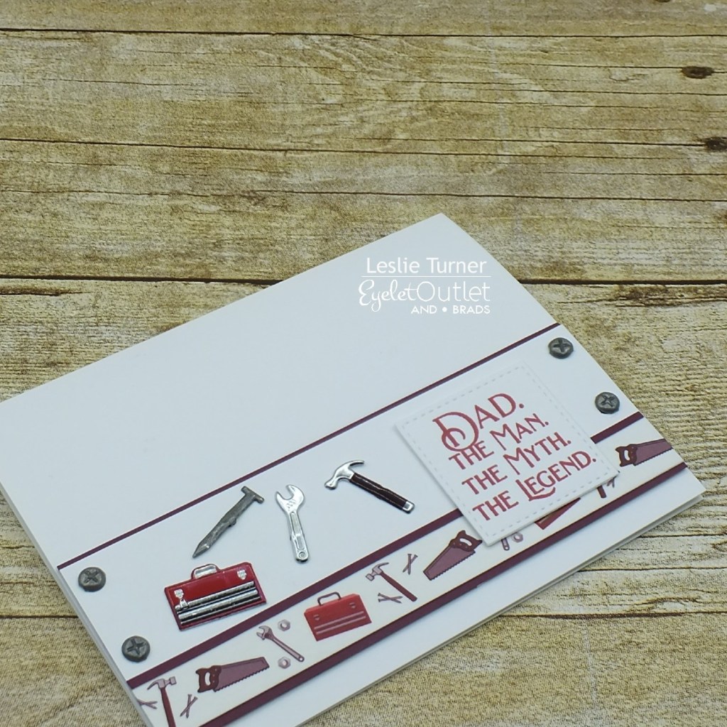 Hi everyone! Hope you’re all doing well and staying safe! Affiliate links are used in this post at no cost to you. I really appreciate your support! I’m happy to be back on the Eyelet Outlet blog today with another awesome DT inspiration project! I created a cool Father’s Day card featuring lots of manly brads and washi tape! Oh, so fun!