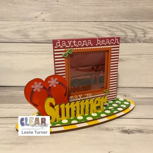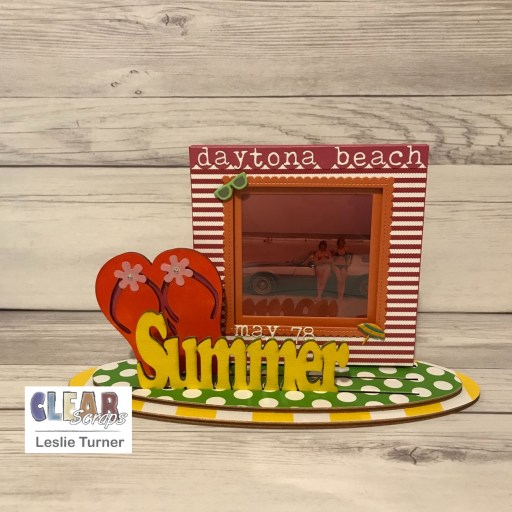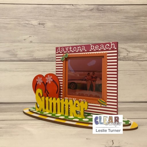 Hey, everybody! I hope you had a great week and you’re having fun this weekend and staying healthy! I’m thrilled to be back on the Clear Scraps blog today with another awesome DT inspiration project! I created another 3-D Frameables project – these are so versatile and so much fun! I used the Base with Square Frame and Word n Shape Summer-Flip Flops this time to document a memory from May 1978 that is still just as fresh in my mind as it was that day! My BFF got a brand new 1978 Chevy Camaro which we drove up and down the strip on Daytona Beach – back in the day when people were actually allowed to drive on the beach. We had such a great time… hard to believe that was 44 years ago, lol!
