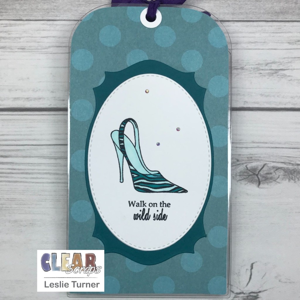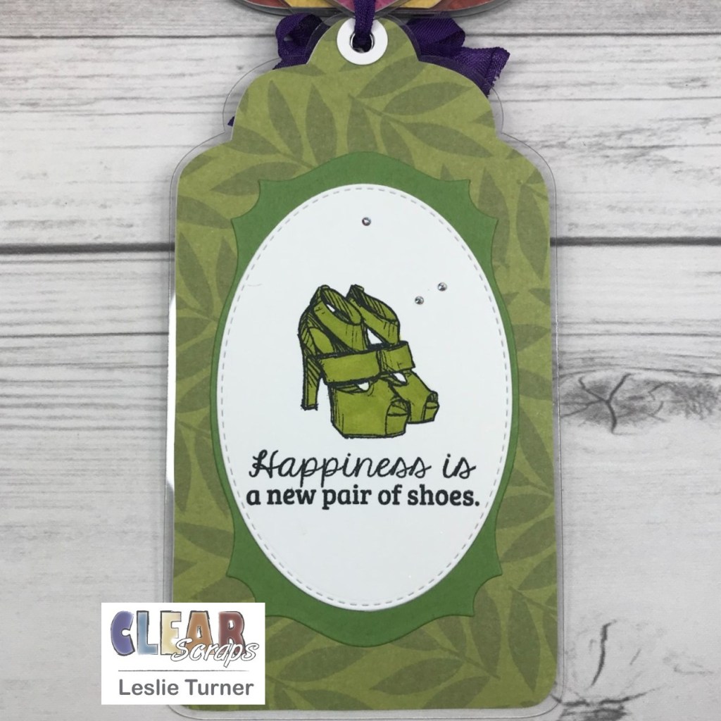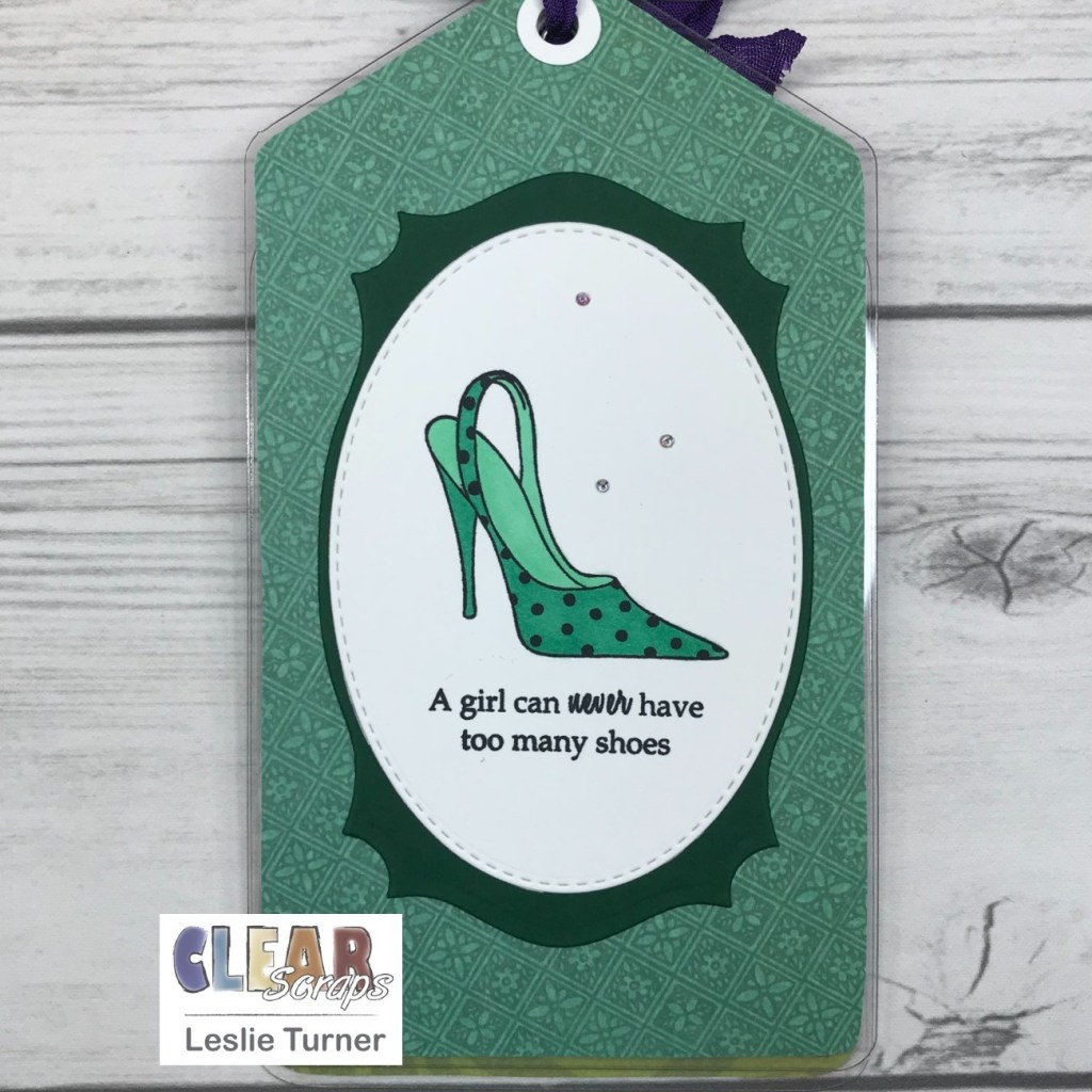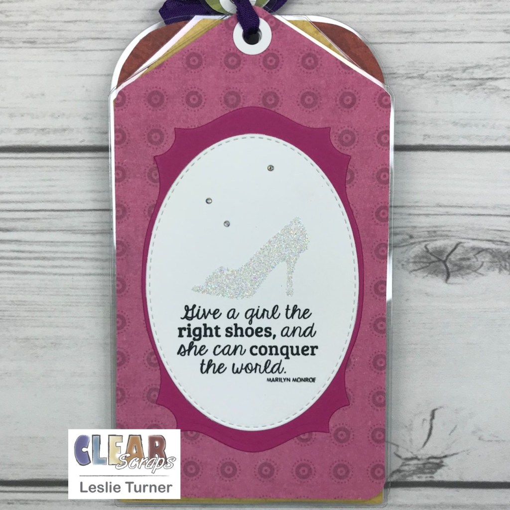 Hey, everybody! Well, another weekend has come and gone, and here we are facing Monday again! But that’s okay as far as I’m concerned… a crafty day is a good day, and it doesn’t matter what day of the week it is! I’m thrilled to be back on the Clear Scraps blog today with another awesome DT inspiration project! Those who know me know that I am passionate about two things: (1) fun folds and (2) shoes! ;) Well, actually three things: (1) cats – we rescue, (2) fun folds and (3) shoes! When I married my kids’ dad many moons ago, I had nearly 60 pairs and he just couldn’t understand it, lol! I don’t have nearly that many now but I still reminisce about the good ol’ days when I had a pair in every color imaginable to coordinate with every outfit. So out came the Acrylic Tag Album to document those memories! This was a fun project!
