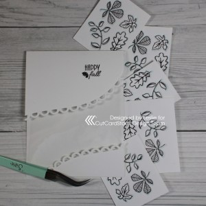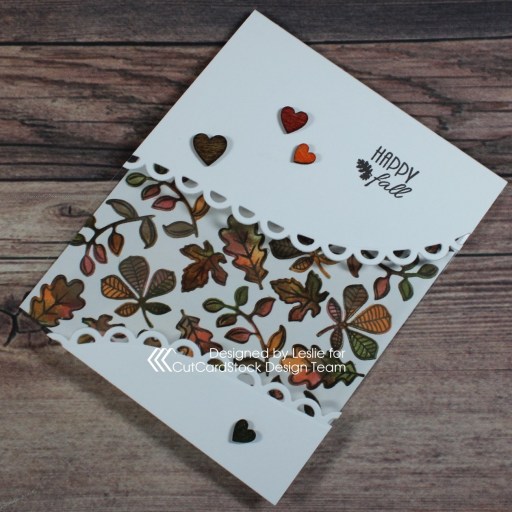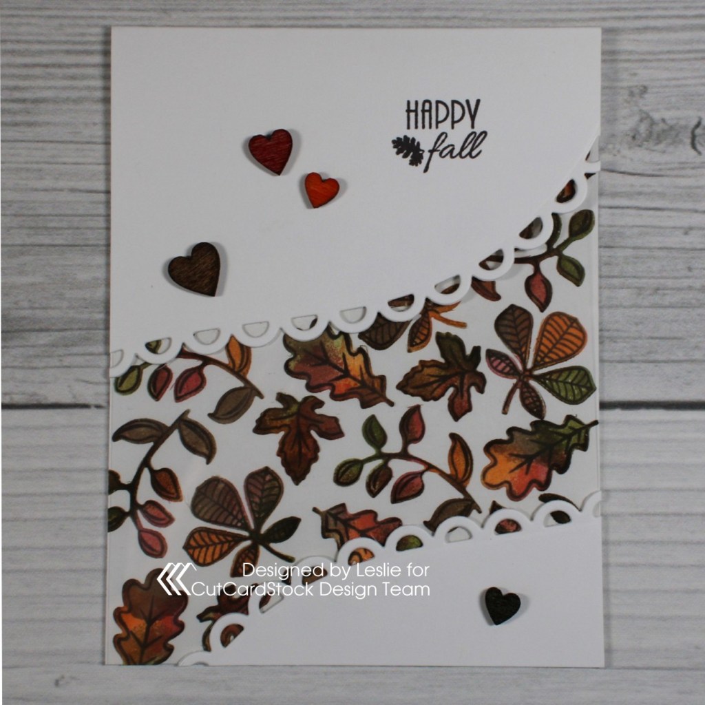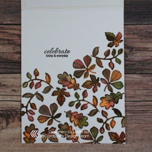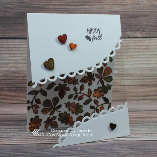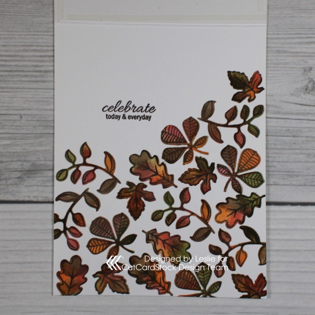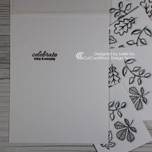 Acetate panel cards are so fun to create and this was a super easy one. All those leaves seen through the acetate were cut from Neenah Classic Crest Solar White 110# cardstock as well, and adhered directly to the inside of the card base.