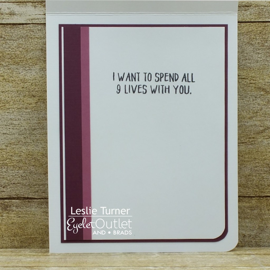 I cut the inside panel from Neenah Classic Crest 80# Solar White cardstock and embellished it with strips of burgundy and rose cardstock, stamped the sentiment in dark brown ink and layered the panel on the burgundy cardstock.