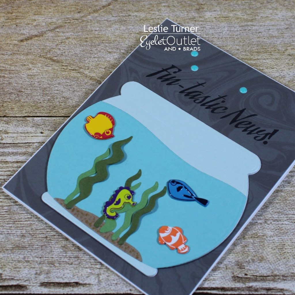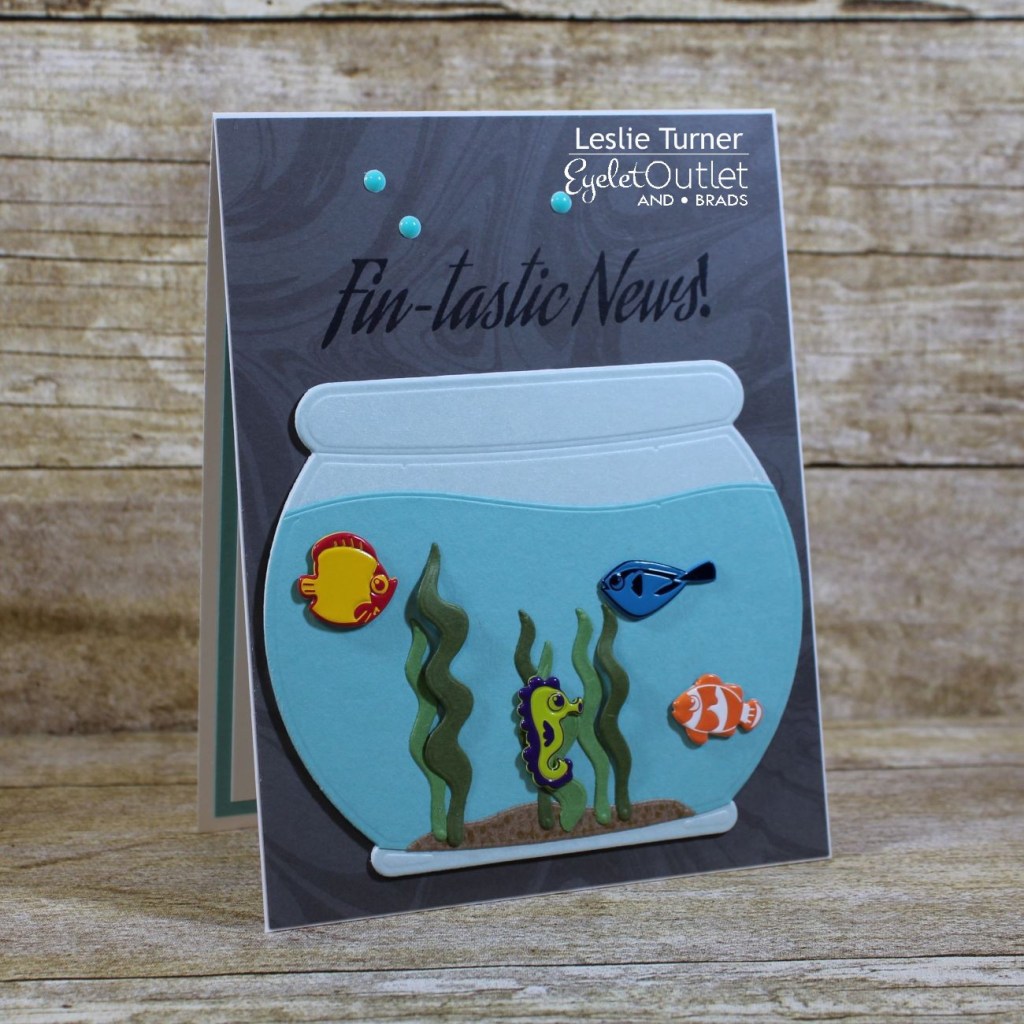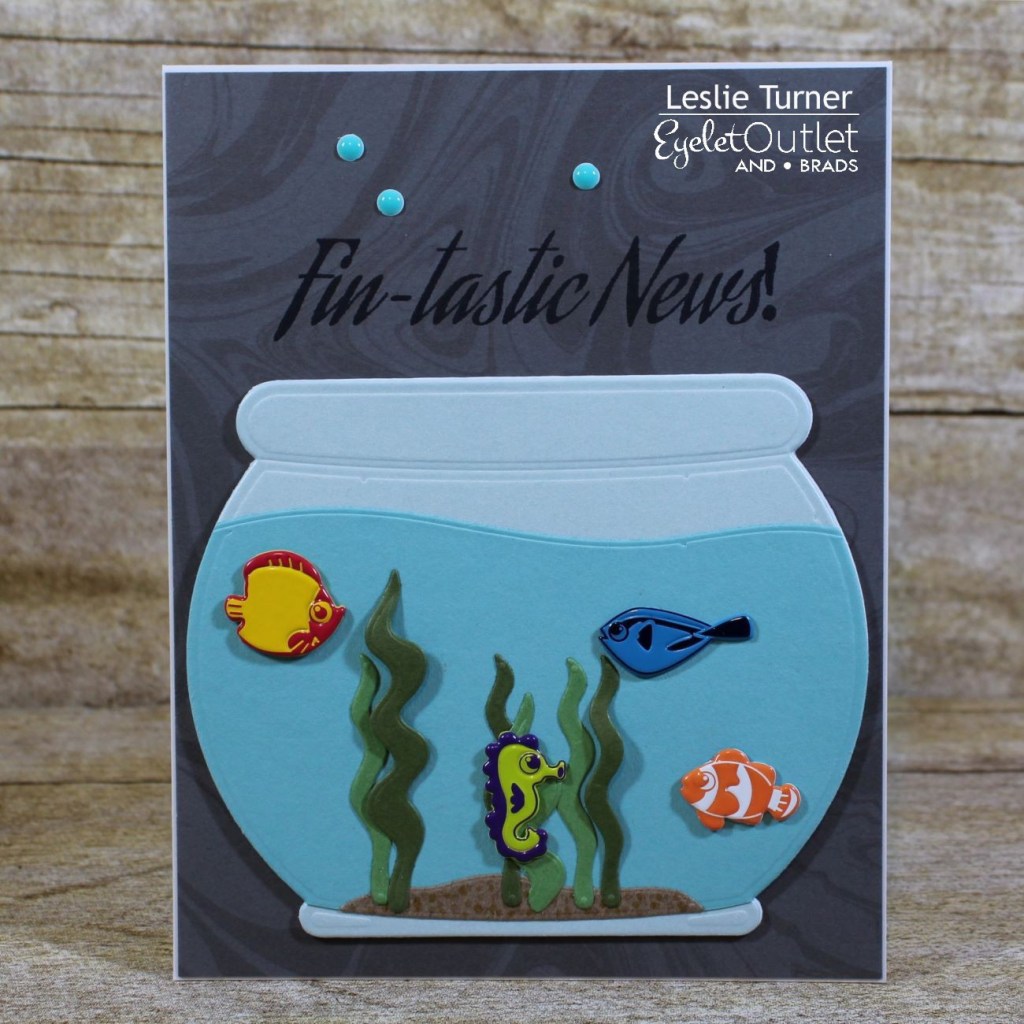 Hi everyone! A very Happy Saturday to you – I hope you’ve had a great week! Affiliate links are used in this post at no cost to you. I really appreciate your support! I’m stoked to be back on the Eyelet Outlet blog today with another awesome DT inspiration project! I created a super cute new home card featuring our Fish Stamp Set and coordinating Fish Brads along with some Blue Enamel Dots!
