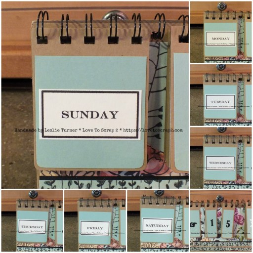 This project was a lot of fun and I’m proud to say it’s my own design. Yep, out came the ruler with lots of measuring and a little planning! The calendar background is a beautiful floral paper with panels showing the days of the week, the months, the numeral date, and a graphic for that month’s holiday.
