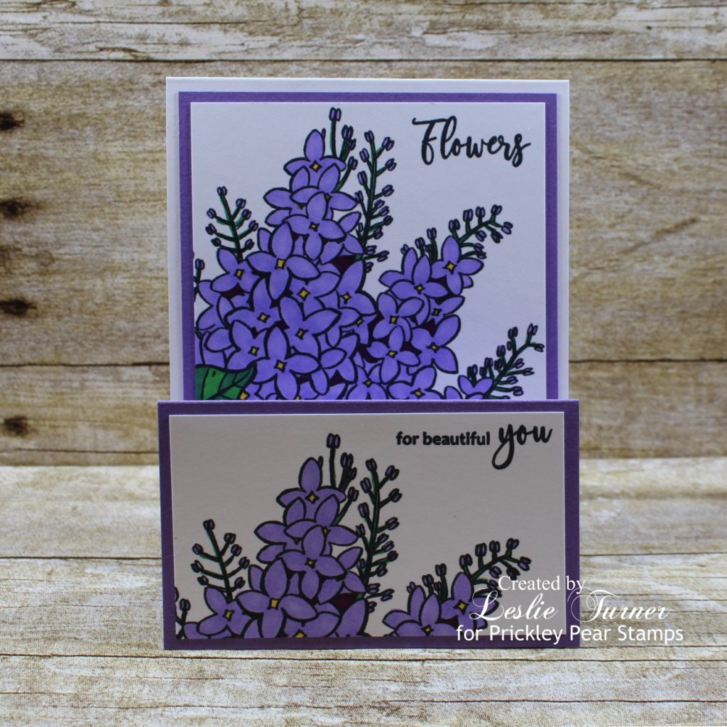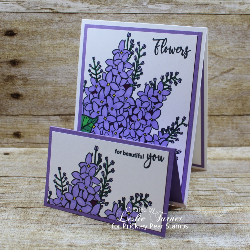 Hi friends! A super Happy Saturday to you! Hope you have something fun (but safe) planned this weekend! Affiliate links are used in this post at no cost to you. I really appreciate your support! I’ve popped in this morning to share another sample I created for the Prickley Pear Stamps Spring 2021 Release! I’ve had the best time creating with these amazing new sketched florals, super sweet praying Tess, and the masculine stamps! Be sure to check them out! I’ve had handwritten instructions for a new fun fold in my arsenal for several months now, called a double easel fold, which I saw in a newsletter from Sharon Armstrong, a SU Demonstrator in Texas, so I decided to try it out. It’s super easy and oh, I love it! This card features the gorgeous Sketched Florals – Lilac stamp set which I paired with the Flowers for Beautiful You stamp set!