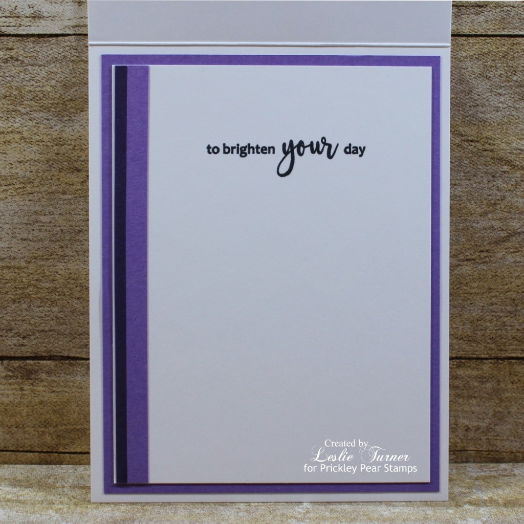 I cut the inside panel from Neenah Classic Crest 80# Solar White cardstock as well and embellished it with strips of CutCardStock Basis 80# Dark Purple cardstock and CutCardStock Pop-Tone 65# Grape Jelly cardstock, stamped the sentiment in black ink and layered the panel on the lighter purple cardstock.