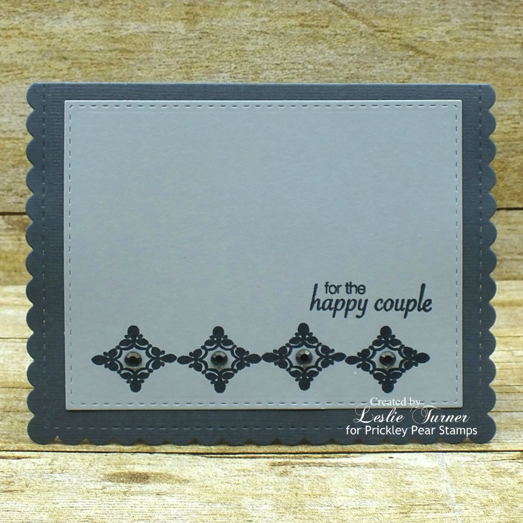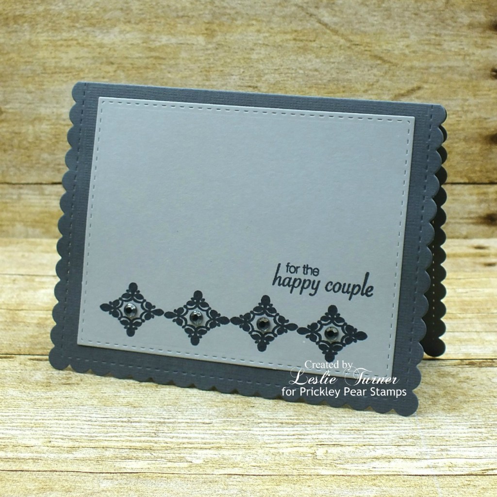 Mornin’ peeps! It’s Fri-YAY and I’ve popped in this morning to share another sample I created for the Prickley Pear Stamps Hochanda show early last month. I’m finally winding down with the Hochanda samples… I have one more to share later today and I’ll be done for this go-round. This was quite an undertaking and I’m so proud to have been asked to do it! I created this pretty CAS wedding card in shades of gray using the Scalloped Oval and Scalloped Oval 4-Floral stamp sets.