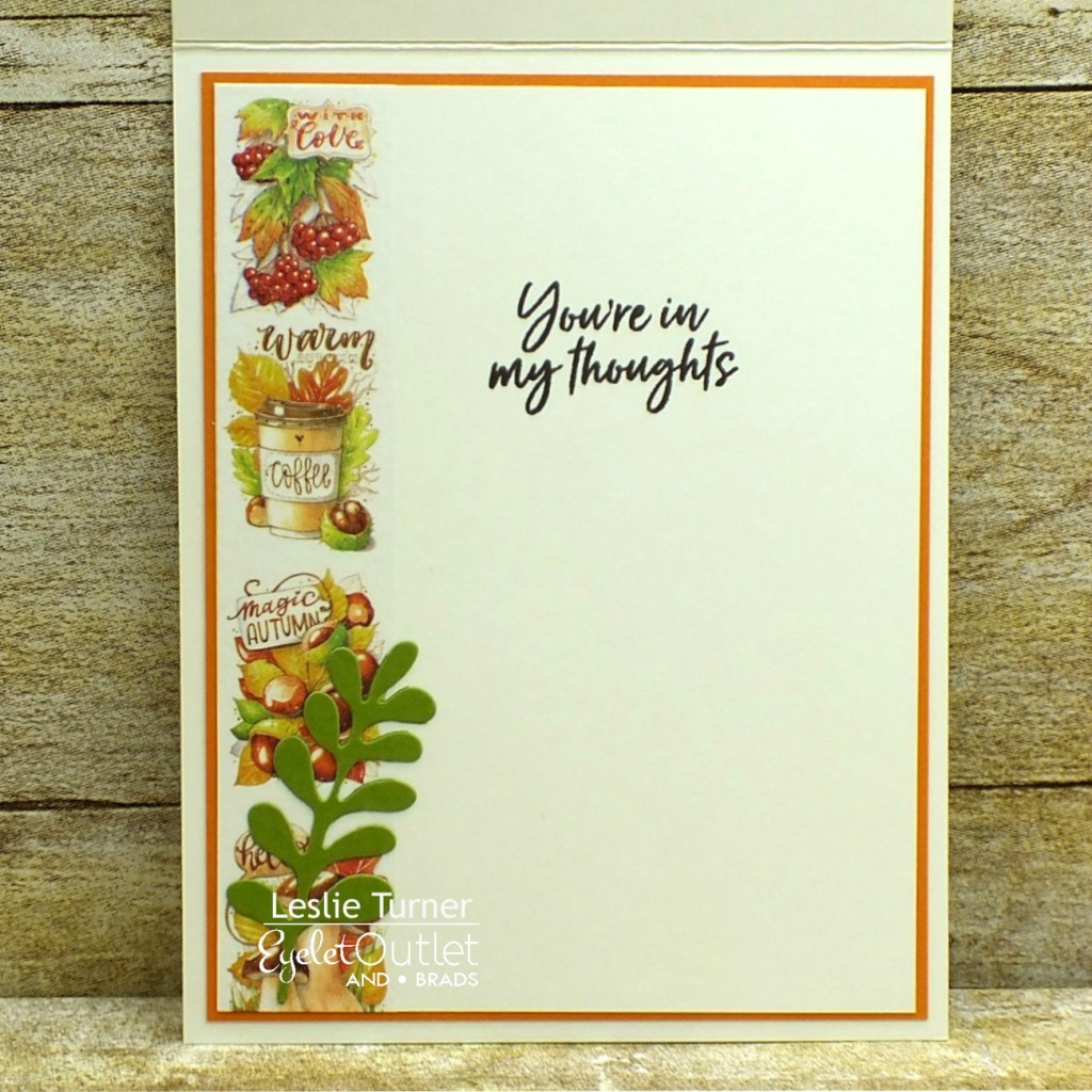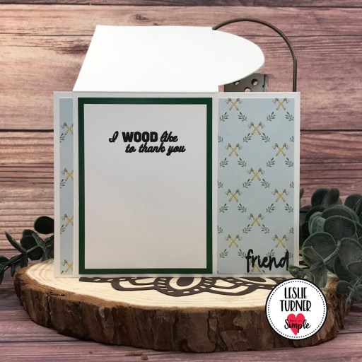I cut the inside panel from Cougar Smooth White cardstock with a Back To Basics Stitched Rectangles Nested Die and layered it on CutCardStock Pop Tone Jellybean Green cardstock. I stamped a sentiment in Memento Bamboo Leaves ink, which completed the card.