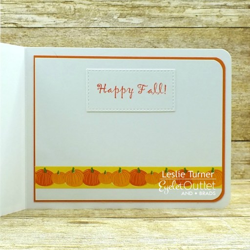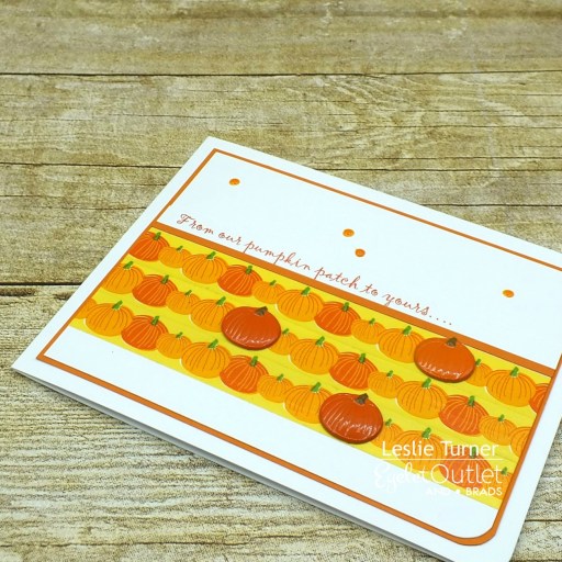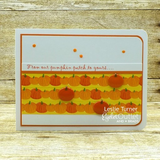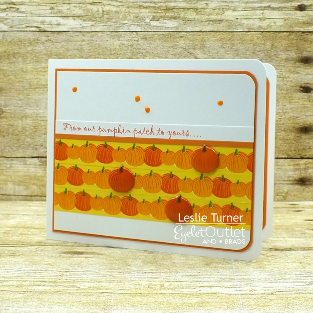 Hi everyone! Are you having any of this cooler weather where you are? Fall has finally arrived here – it’s my favorite time of year and I’m loving every minute of it! I’m happy to be back on the Eyelet Outlet blog today with another awesome DT inspiration project! I created a fun Fall card featuring a couple of our awesome pumpkin products! ‘Tis the season for everything pumpkin, lol!