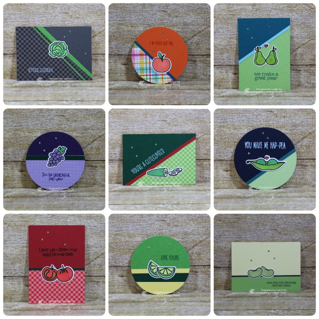 Dies/Punches: Fiskars 2-1/2″ circle punch, PhotoPlay Fruits & Veggies die set