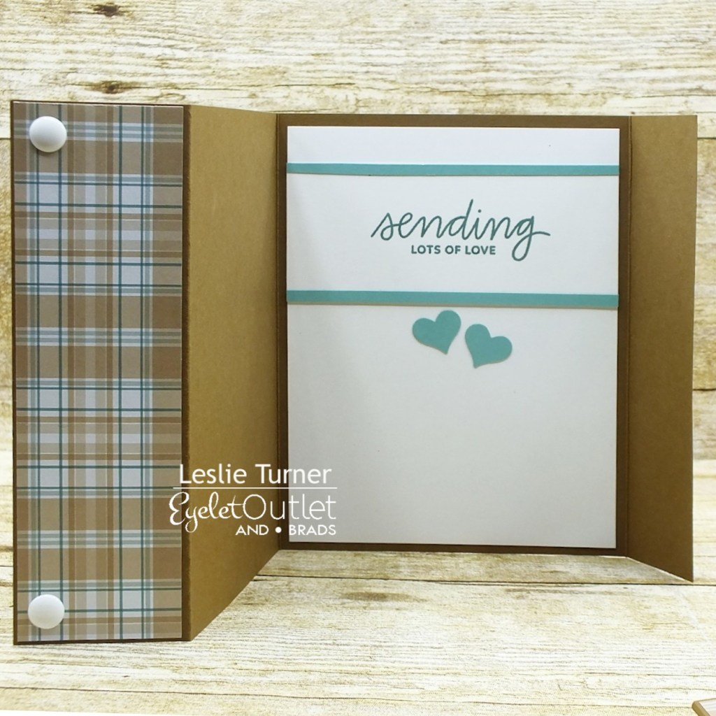 Hi everyone! Happy Saturday to you! Affiliate links are used in this post at no cost to you. I really appreciate your support! I’m thrilled to be back on the Eyelet Outlet blog today with another awesome DT inspiration project! I created a triple fold card that has a belly band and features some of the new quarantine brads in the store, along with enamel dots which are some of my personal favs! You know how I love fun folds – this is the second one of these I’ve made and it’s such an easy one!
